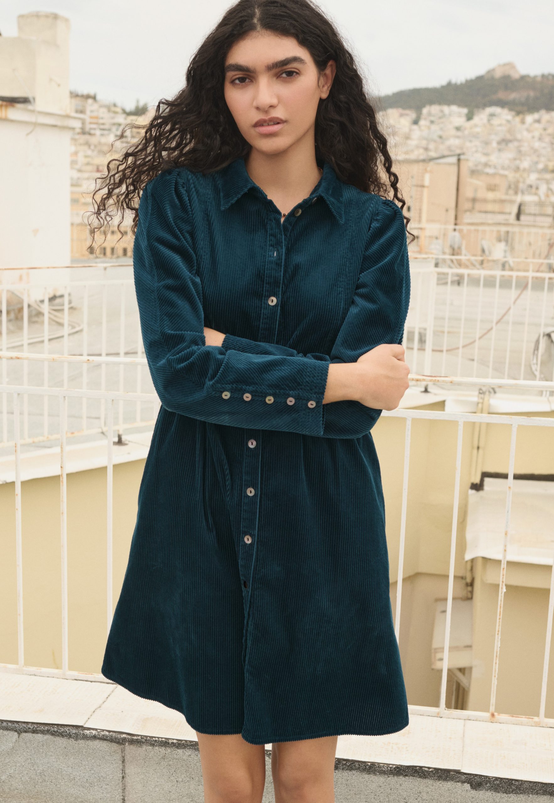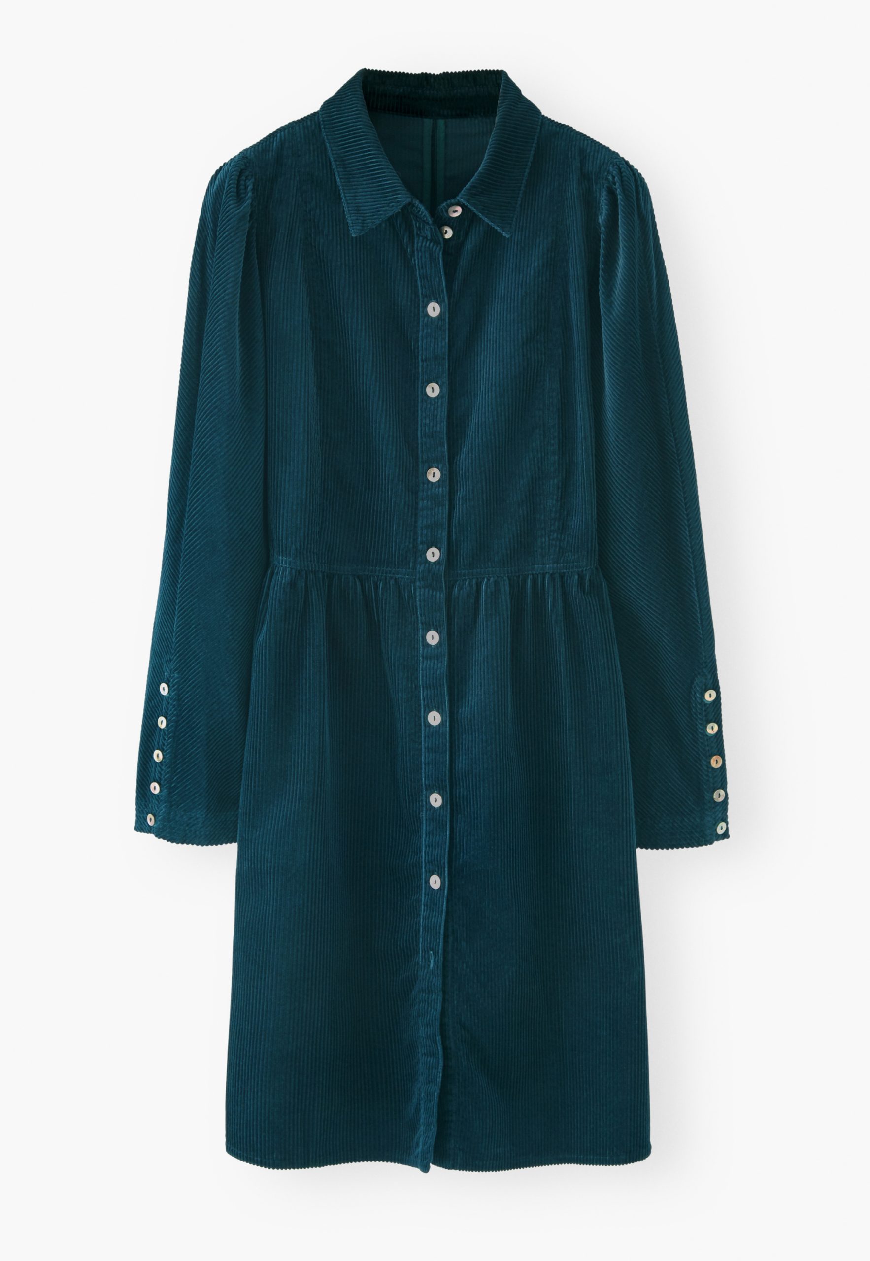 When you’re not sure what to wear, reach for this button-through dress in soft, chunky cotton cord. In a relaxed fit, with full-length sleeves, gathers at the waist and those essential pockets, it only needs a pair of boots or trainers and you’re ready to go.
