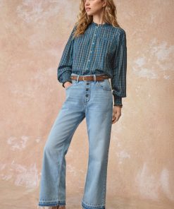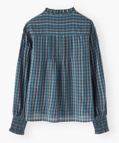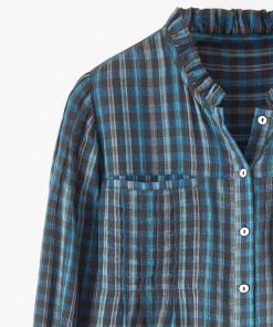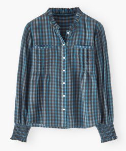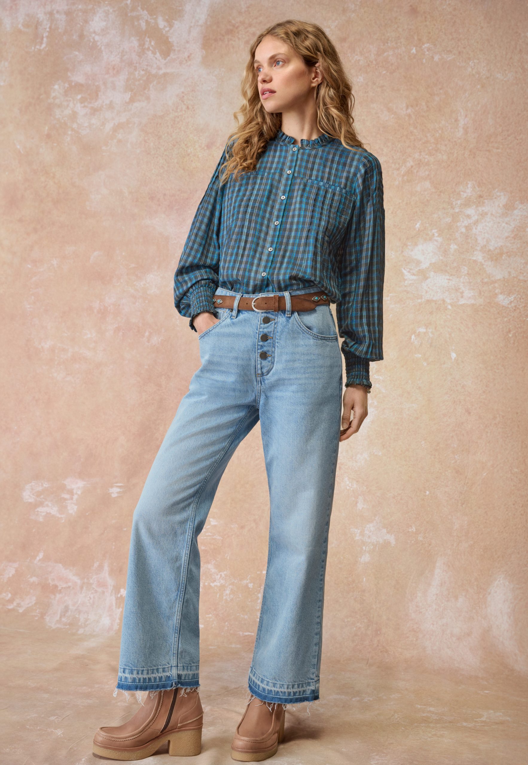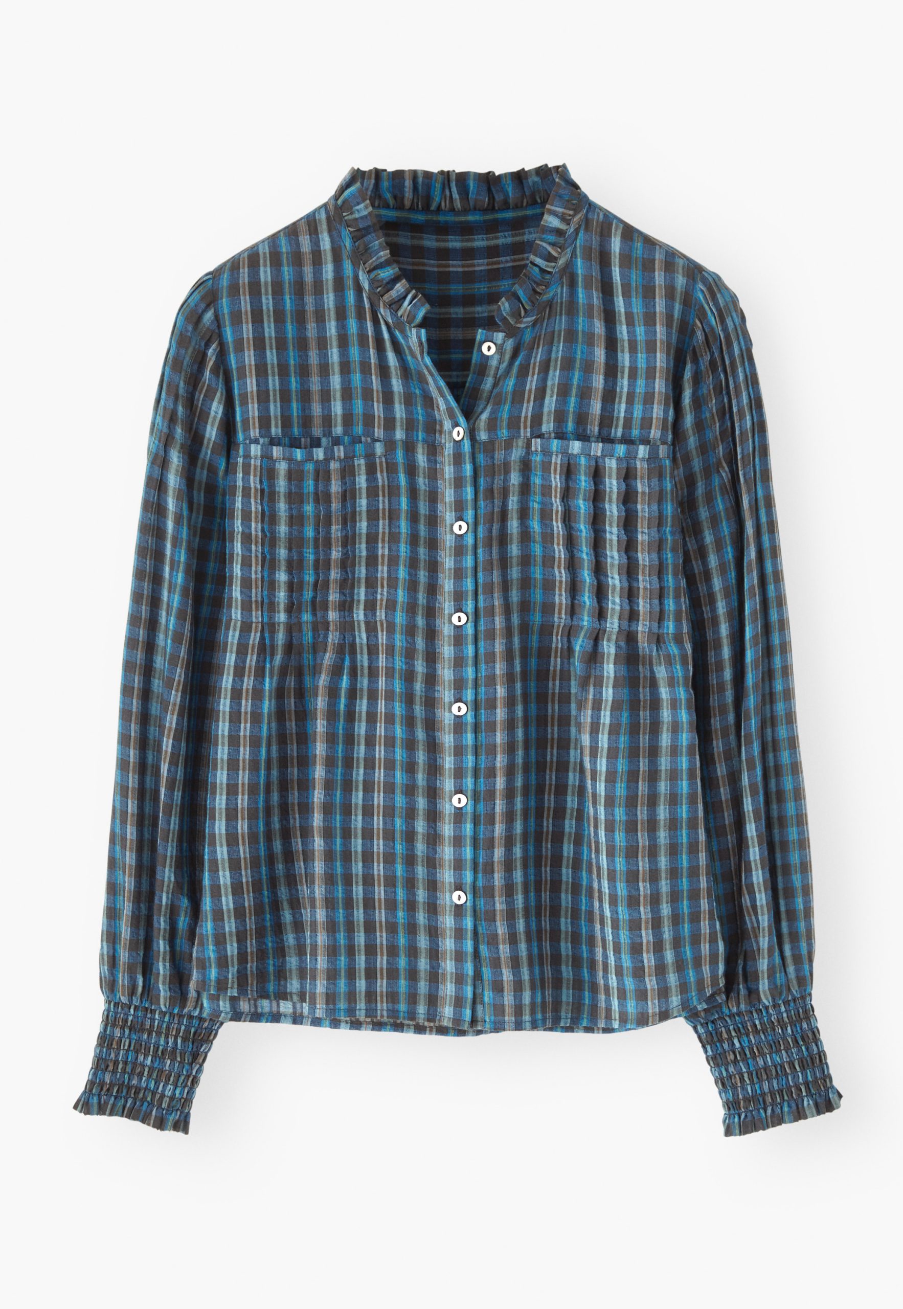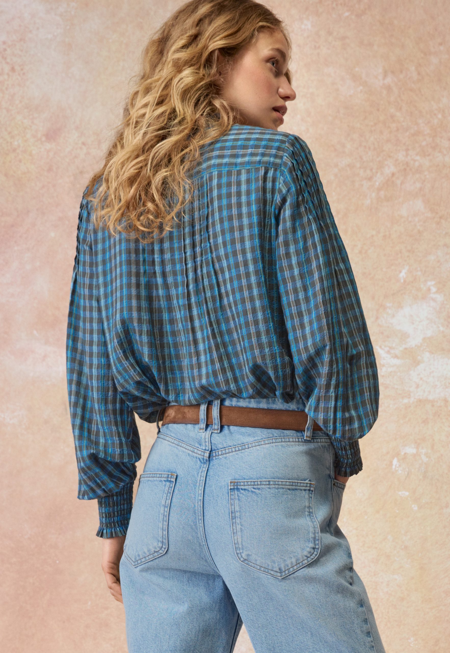 A soft and light relaxed fit checked blouse that’s more contemporary than cowboy. Neat pintucks at the shoulders and pockets add a distinctive detail and the full-length sleeves finish with gathered, shirring cuffs.