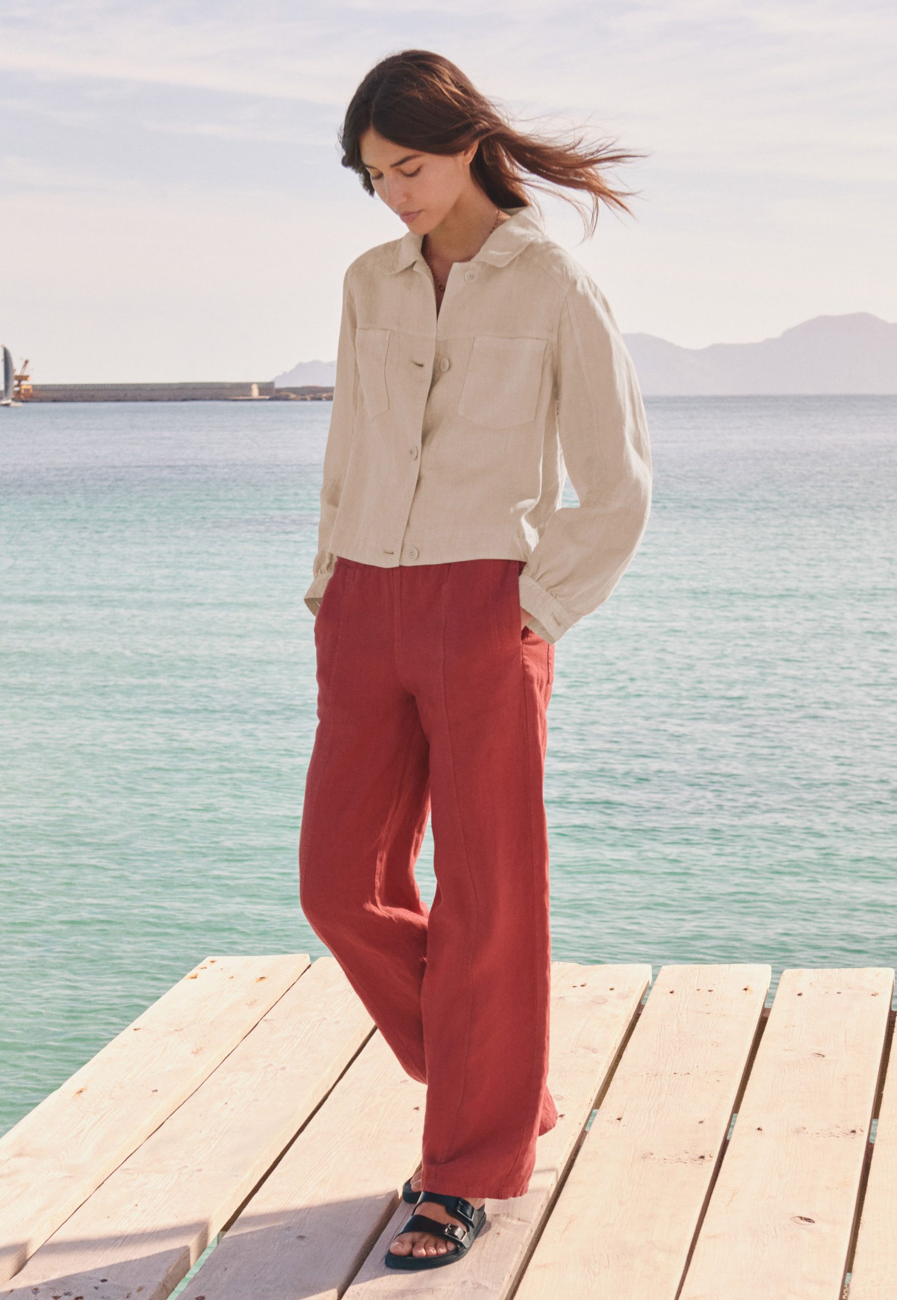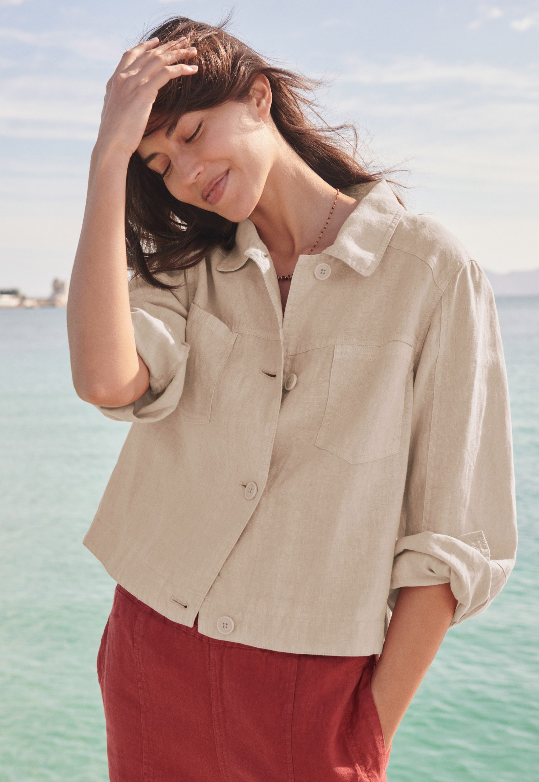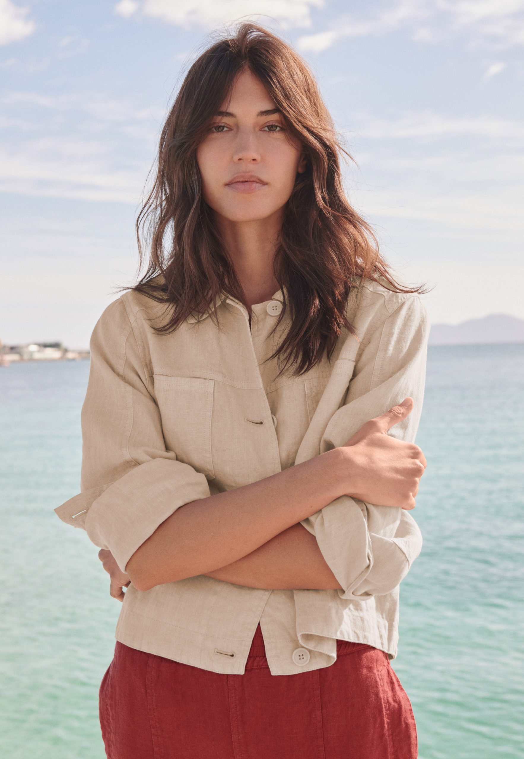 A lovely light jacket in garment-dyed linen. Fully lined, it’s perfect for when you want an extra layer without extra weight.