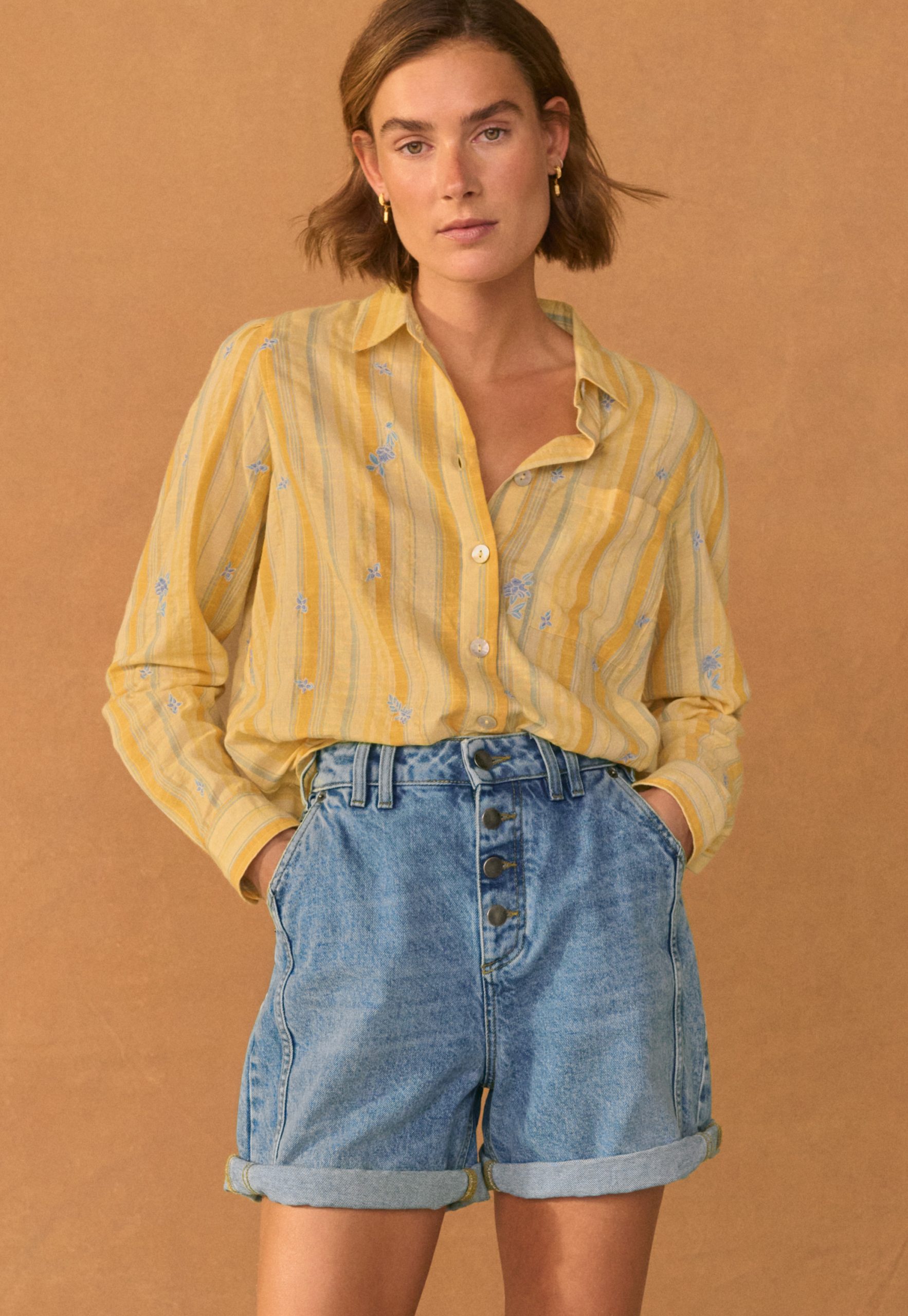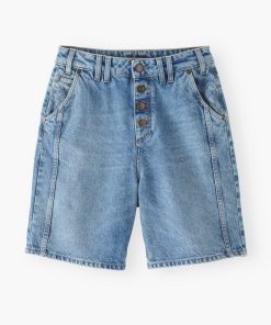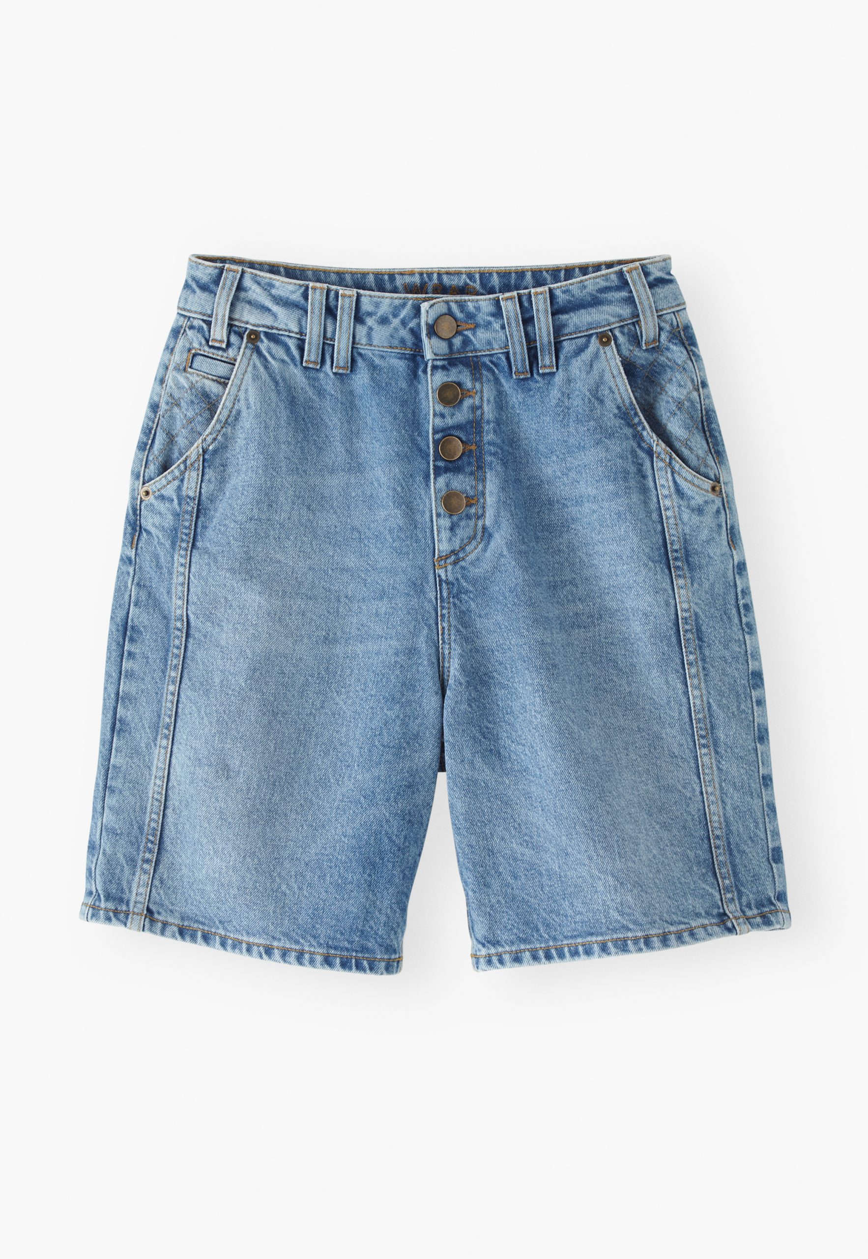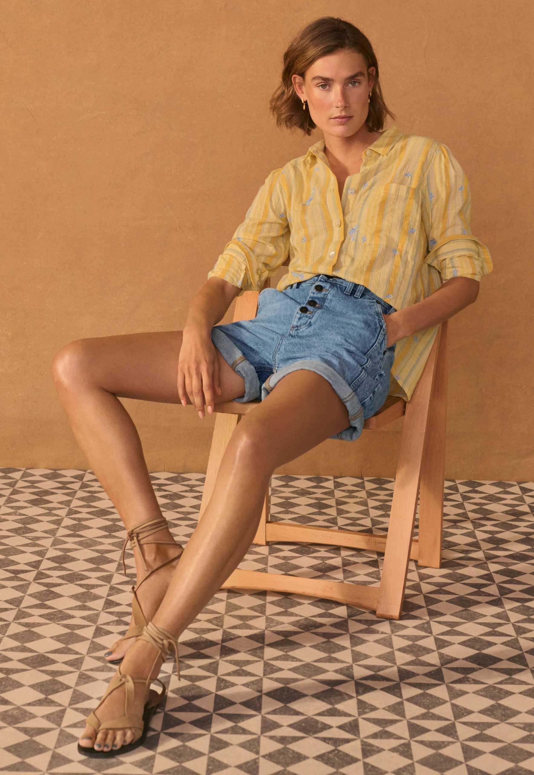 Take the best blue-wash denim, add a button fly, crisscross stitching, belt loops and turn-up hems and you have this fab pair of shorts to run around in all summer.