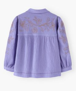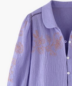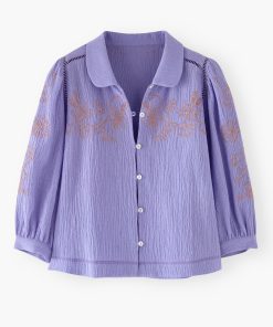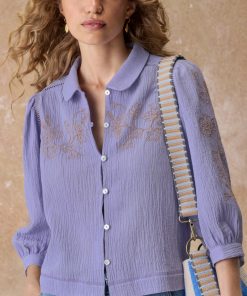 If you’re off on a mini-break, this crinkle cotton and linen blouse is a great one to pack as it looks as good coming out of the case as it did going in. Boxy fit with a soft rounded collar, the highlight is the fine-line embroidery front and back and down the sleeves.
