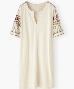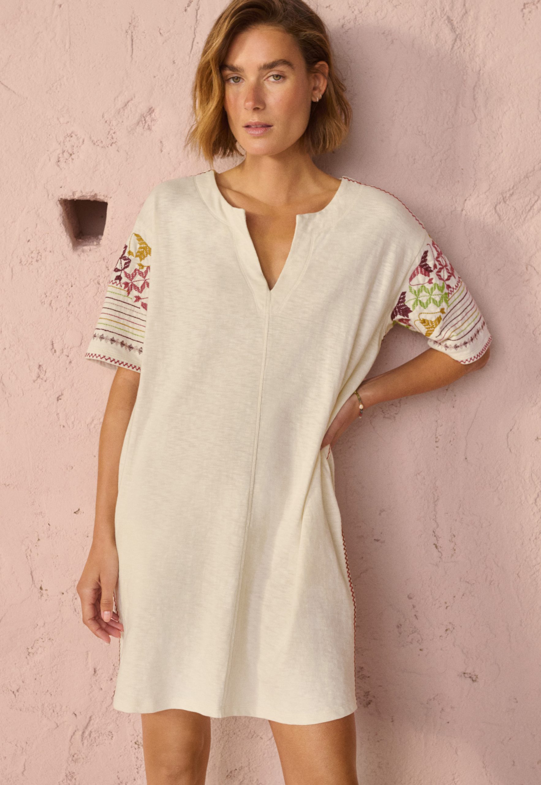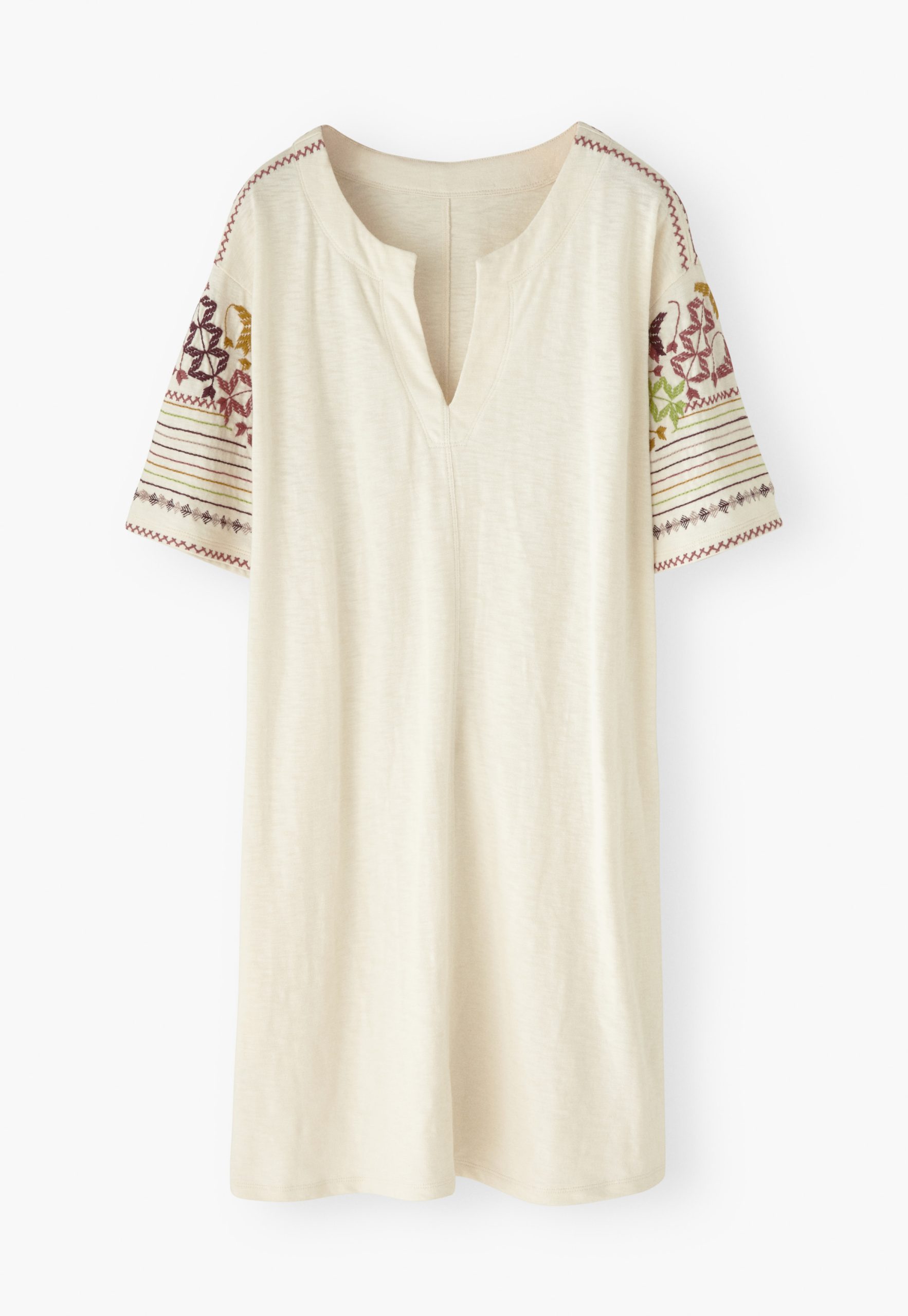 Wrap London Women’s Embroidered Jersey Dress | Ecru