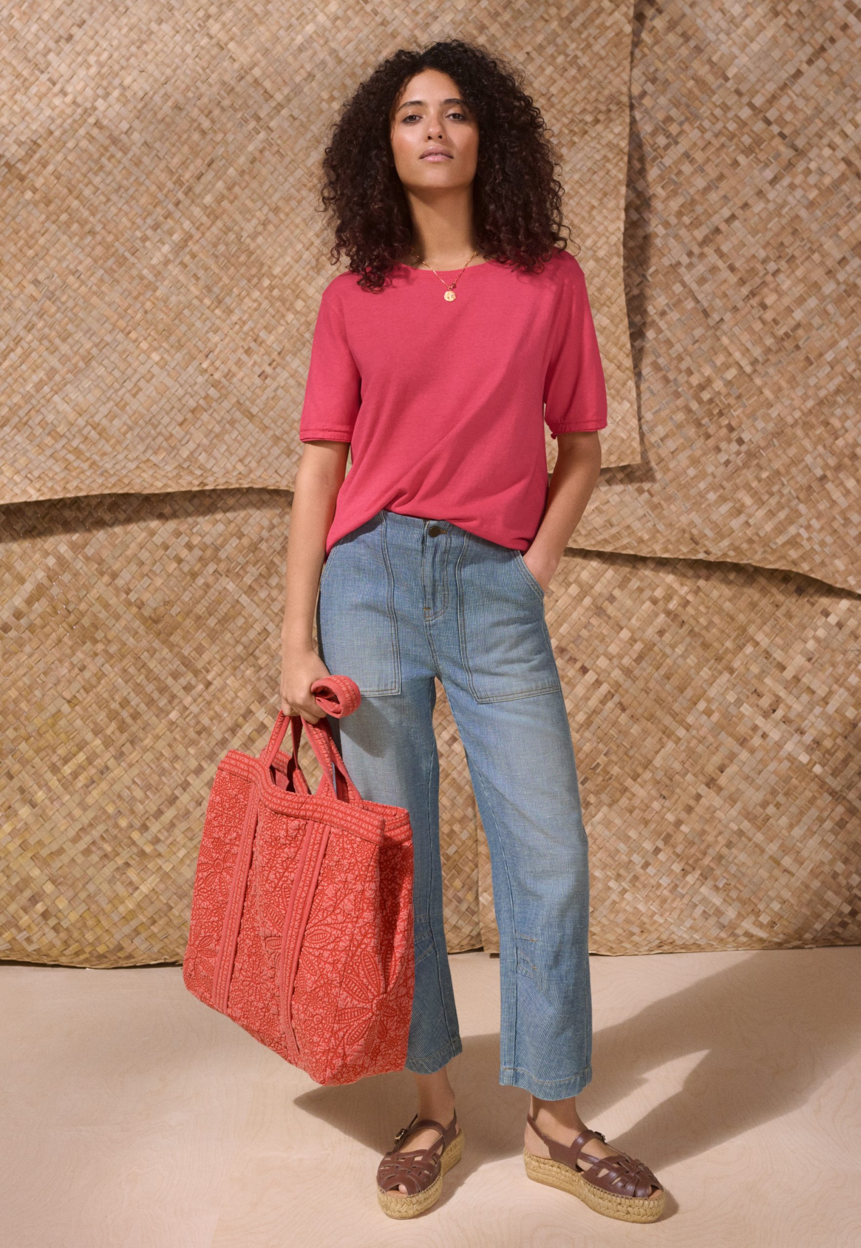 Featuring a delicate floral quilting pattern and a vintage-inspired washed look, this roomy cotton bag has practical wrap-around handles for comfortable carrying, an internal pocket for essentials, and a convenient side pocket.
