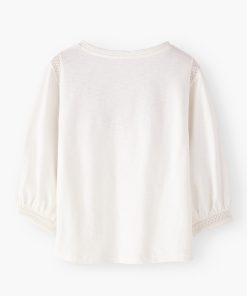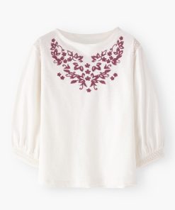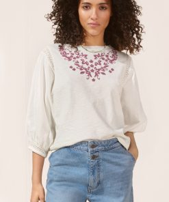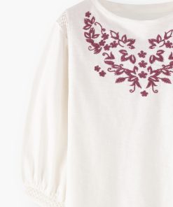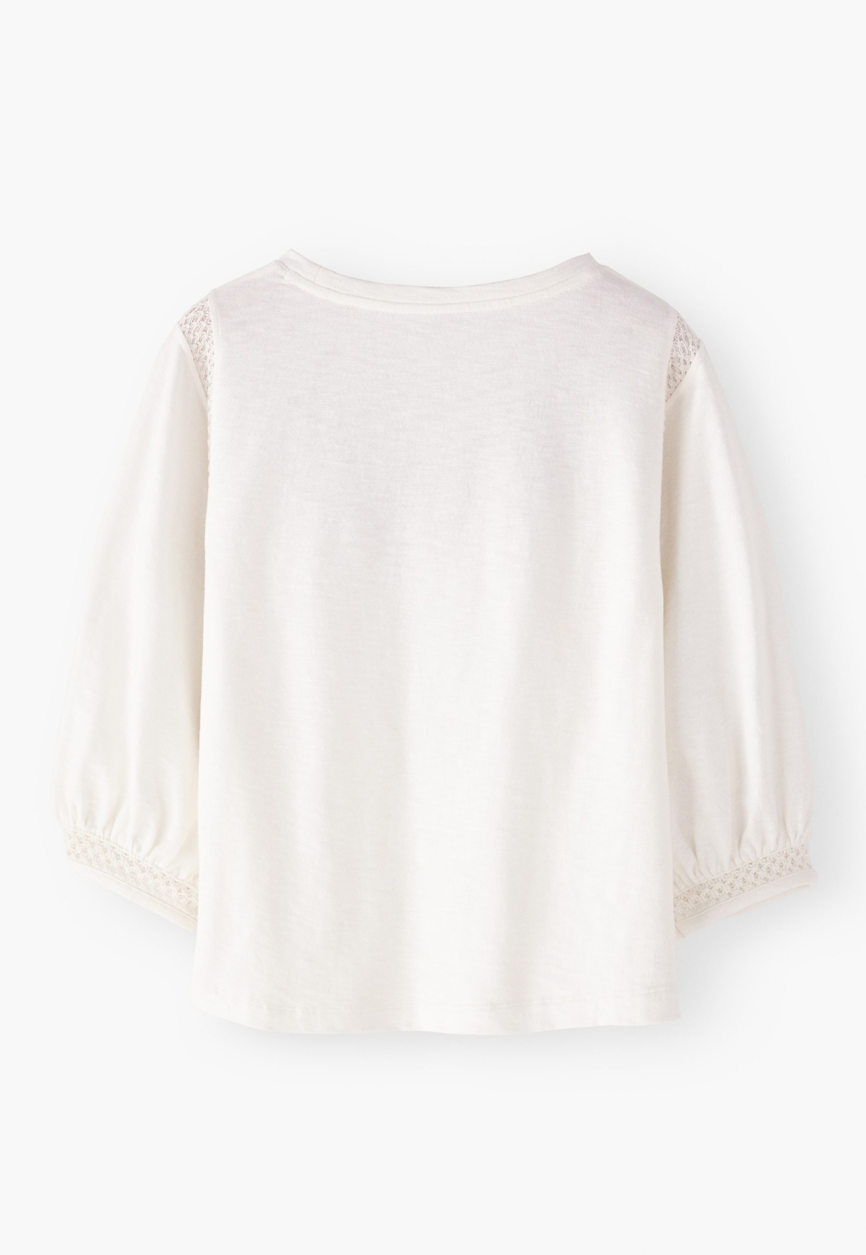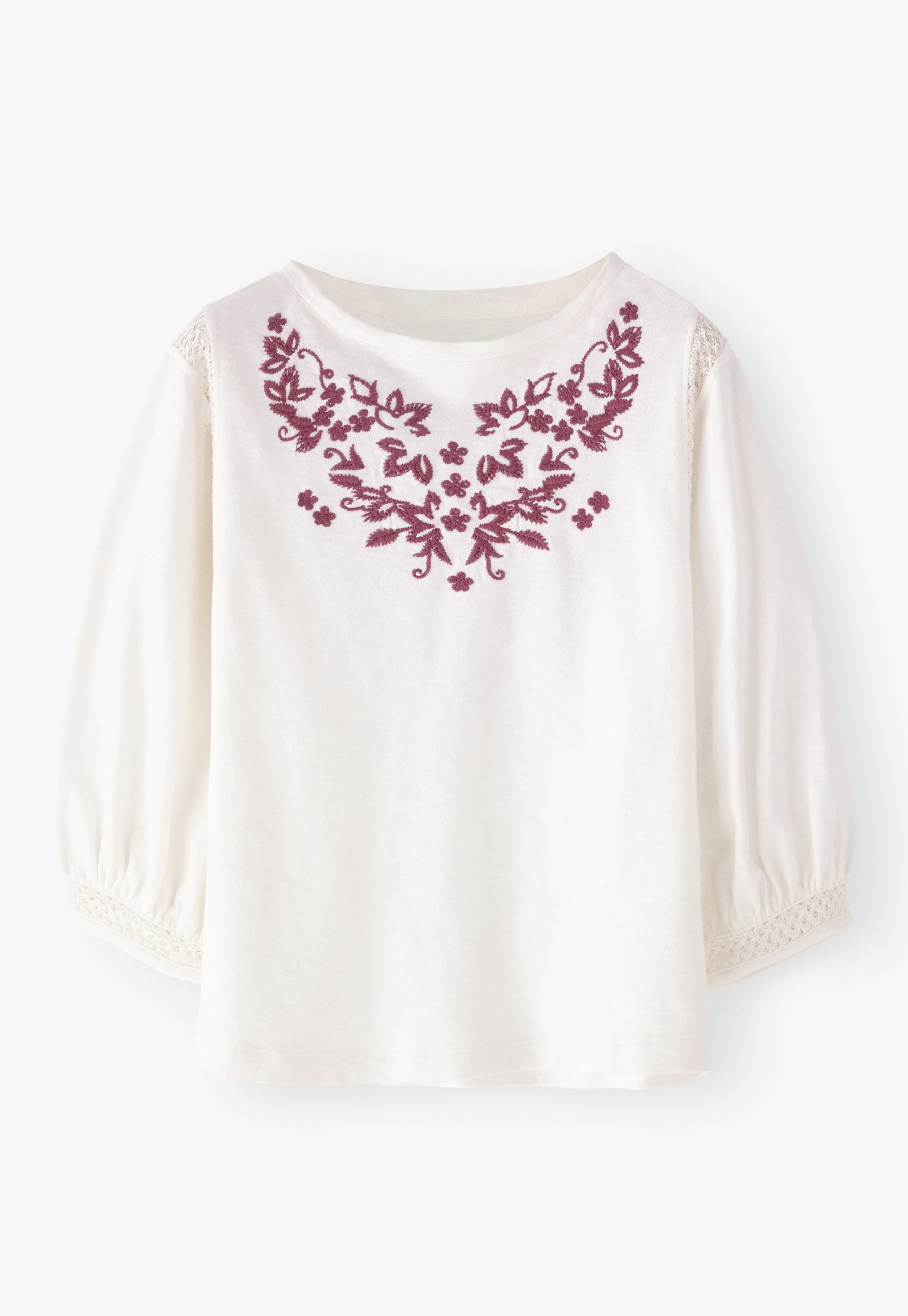 The ease of a sweatshirt with an elevated look thanks to the lovely embroidery detail at the front and the lace inserts at the arms and cuffs.