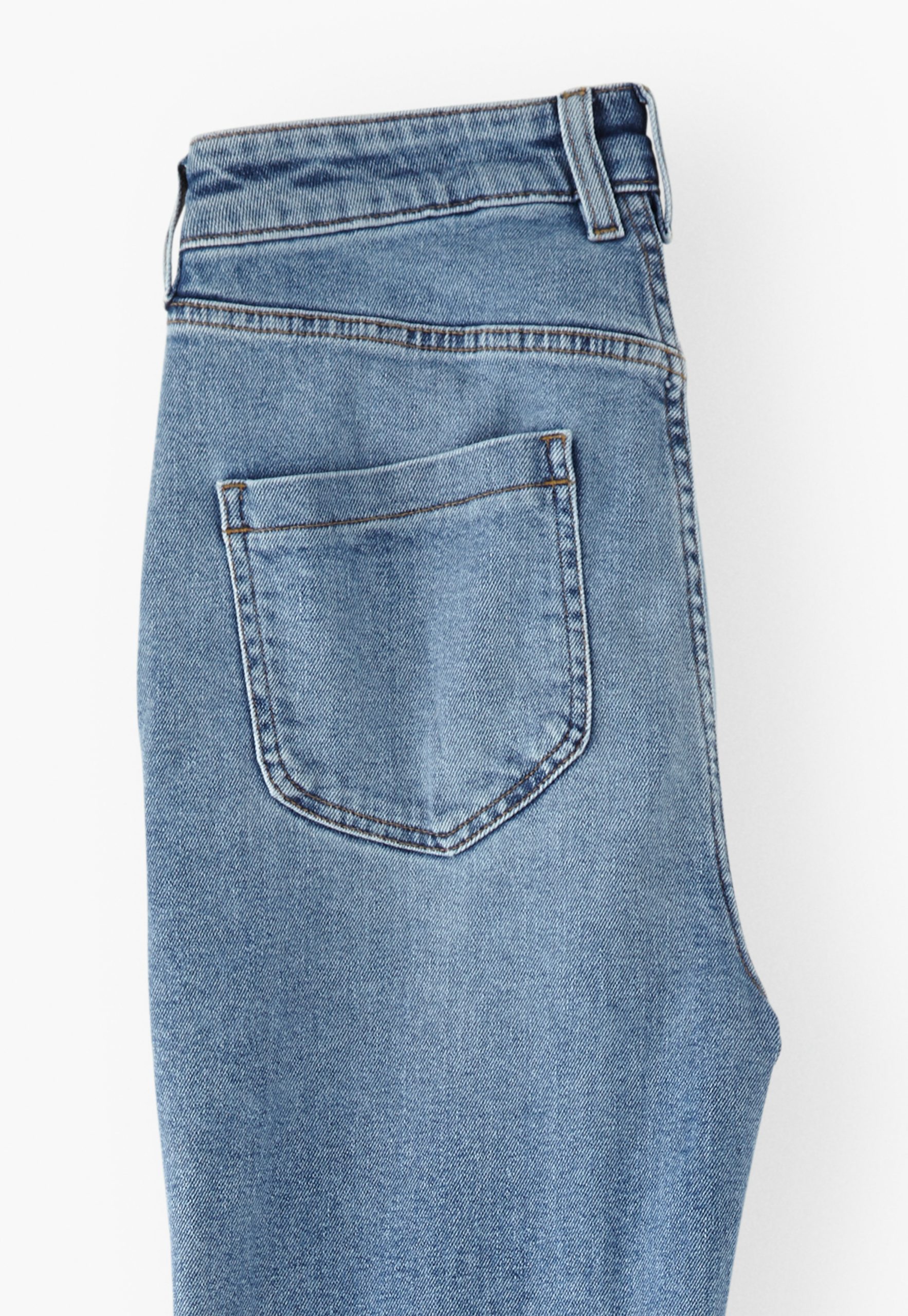 - Zip and button fastening at fly