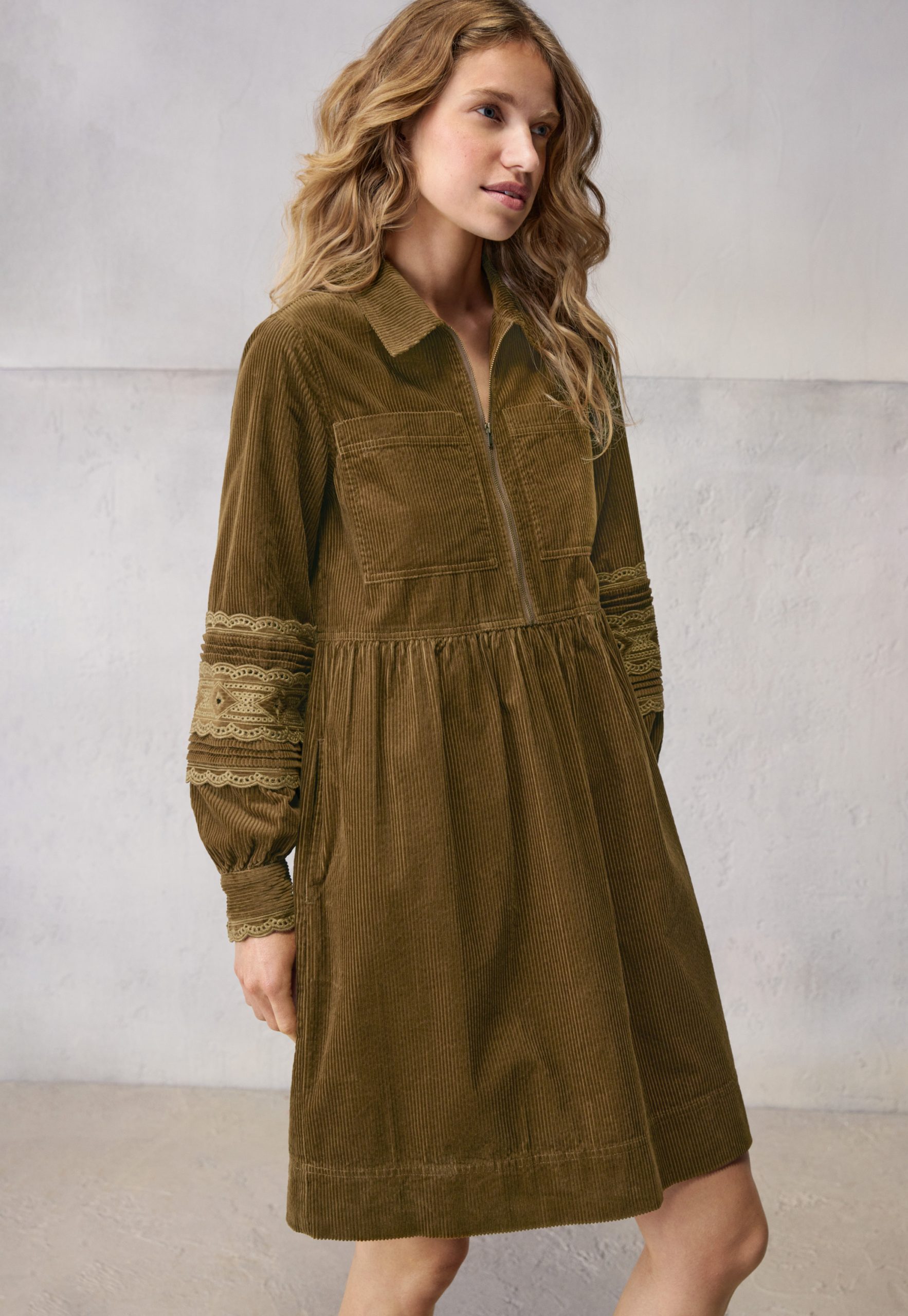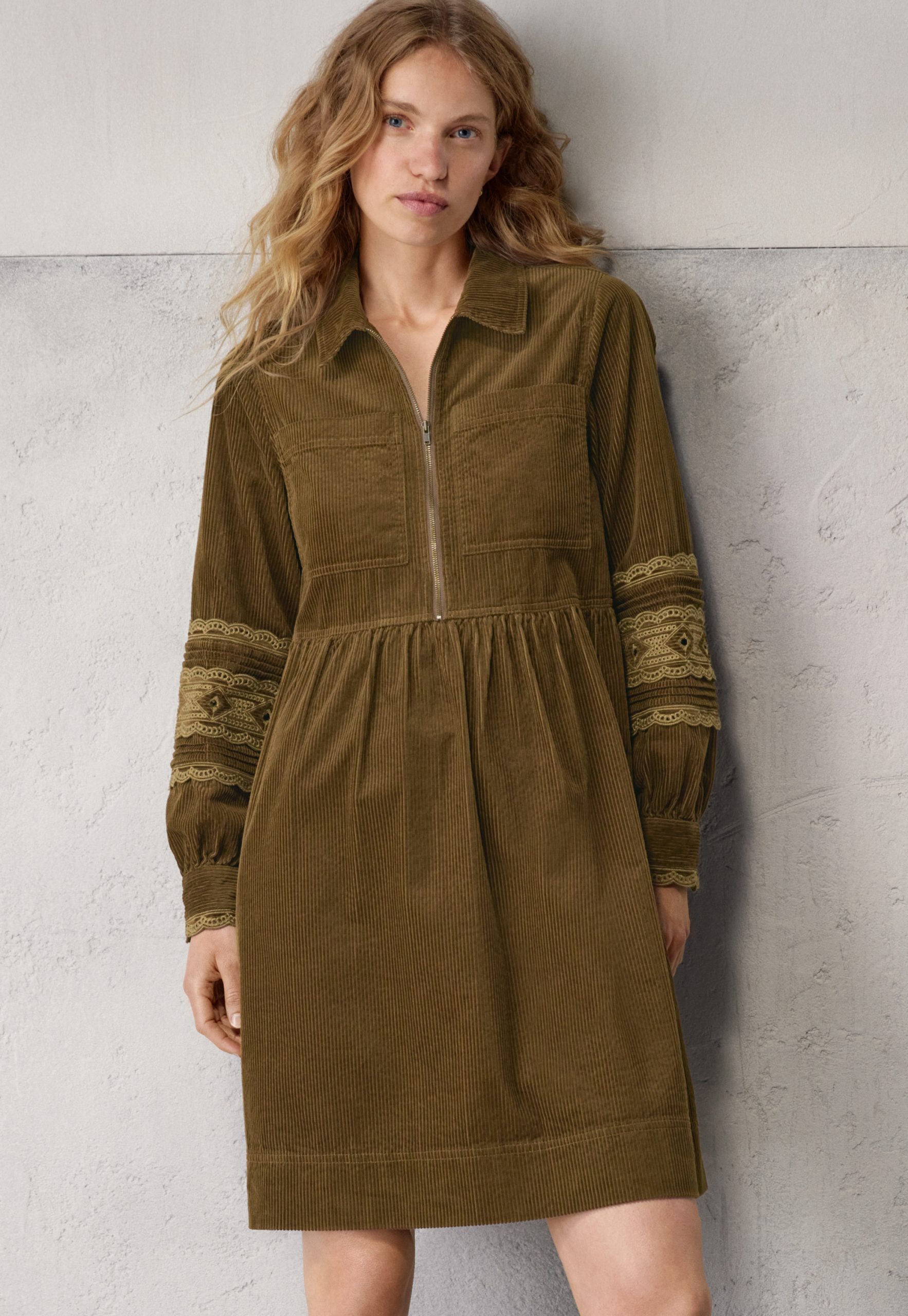 Wrap London Women’s Half-zip Cord Dress | Bronze Olive