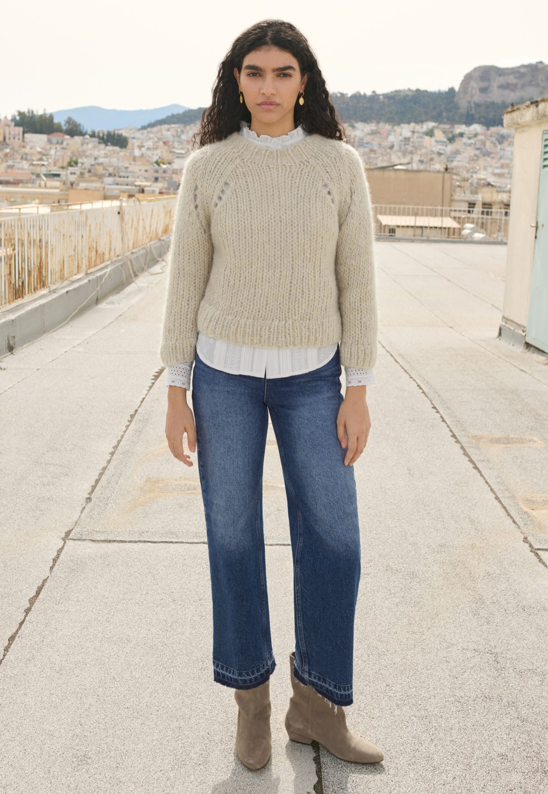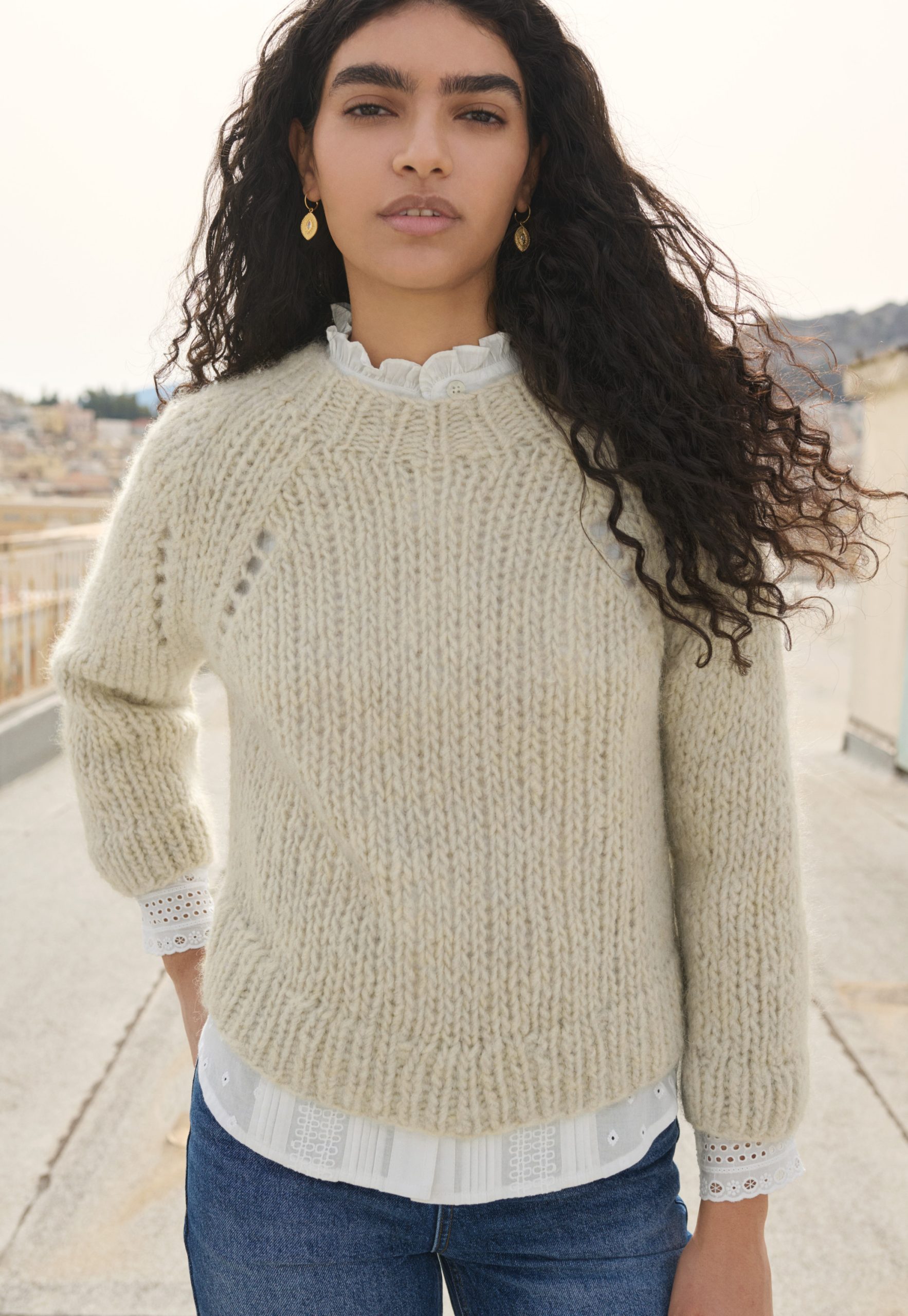 Hand-knitted with love and care, this boxy-fit soft and warm sweater is made from alpaca soufflé wool and is as light and airy as the name suggests.