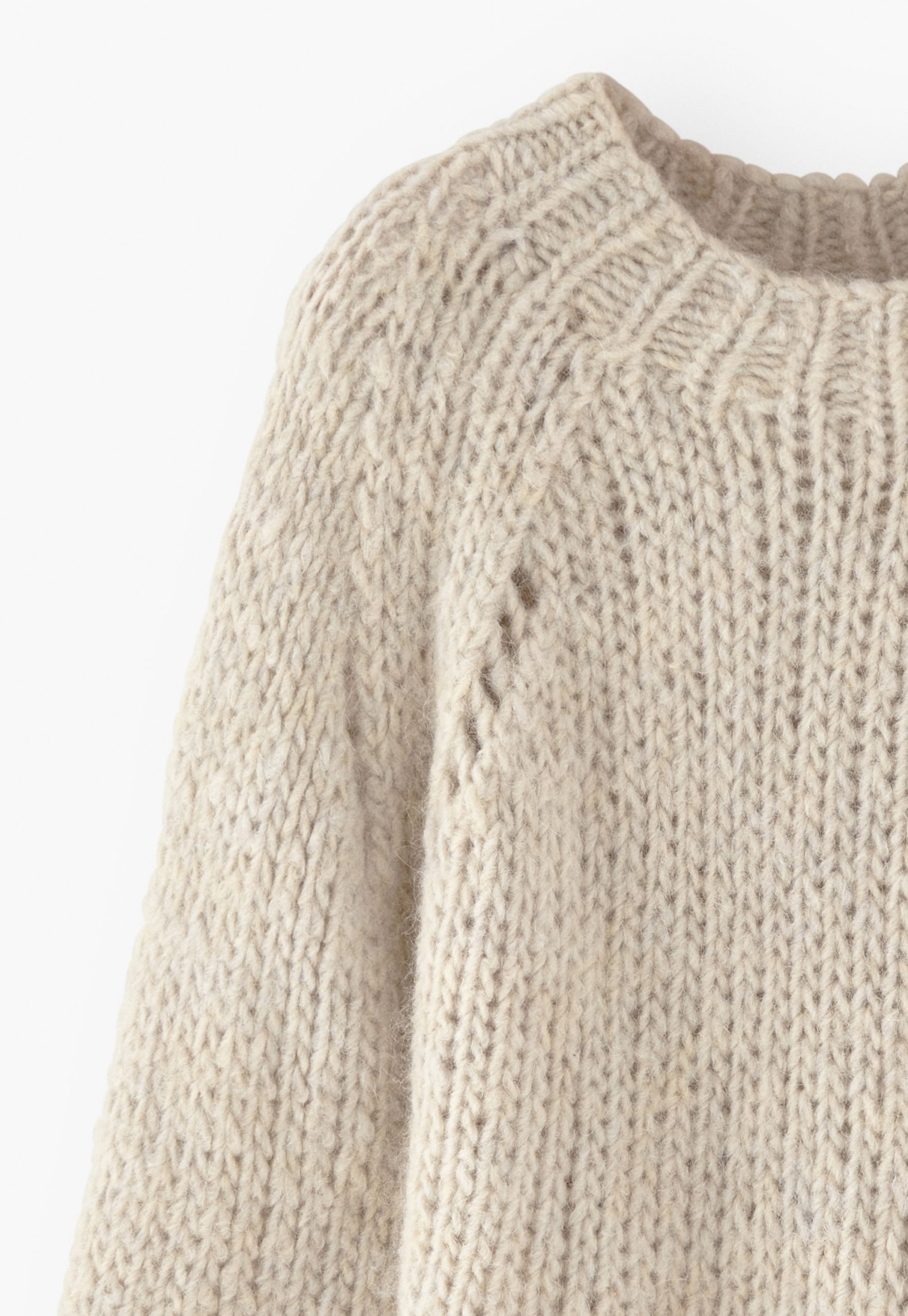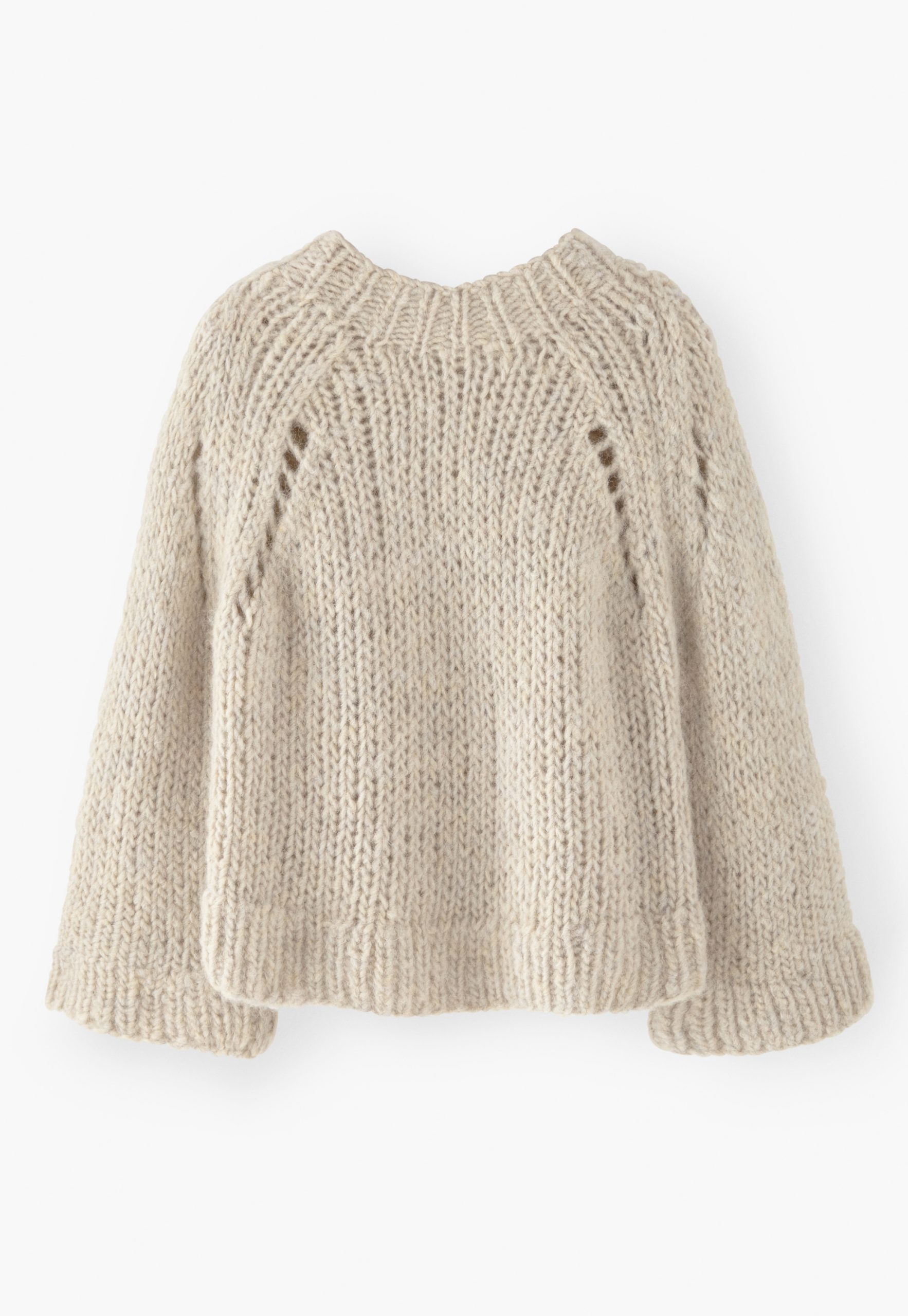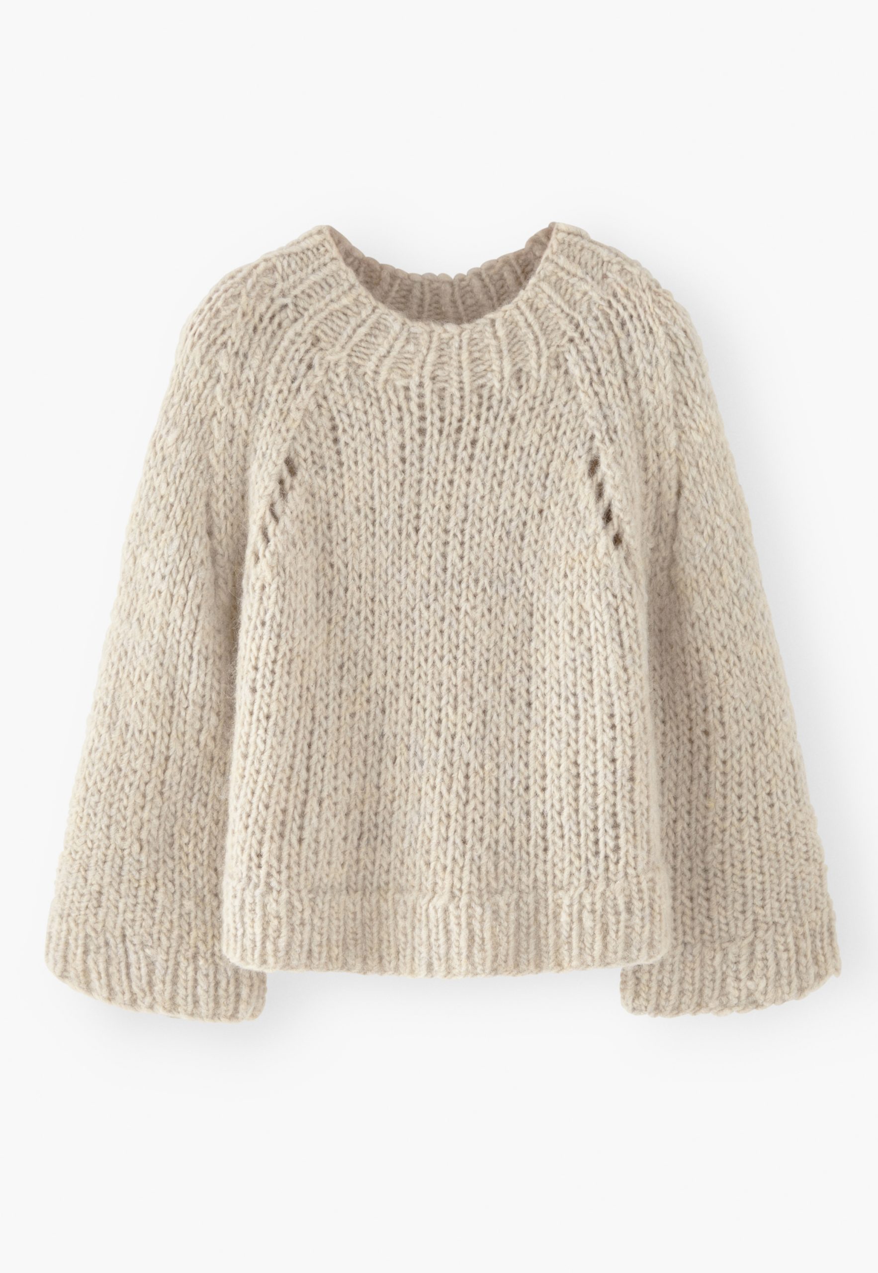 - Pointelle details at raglan