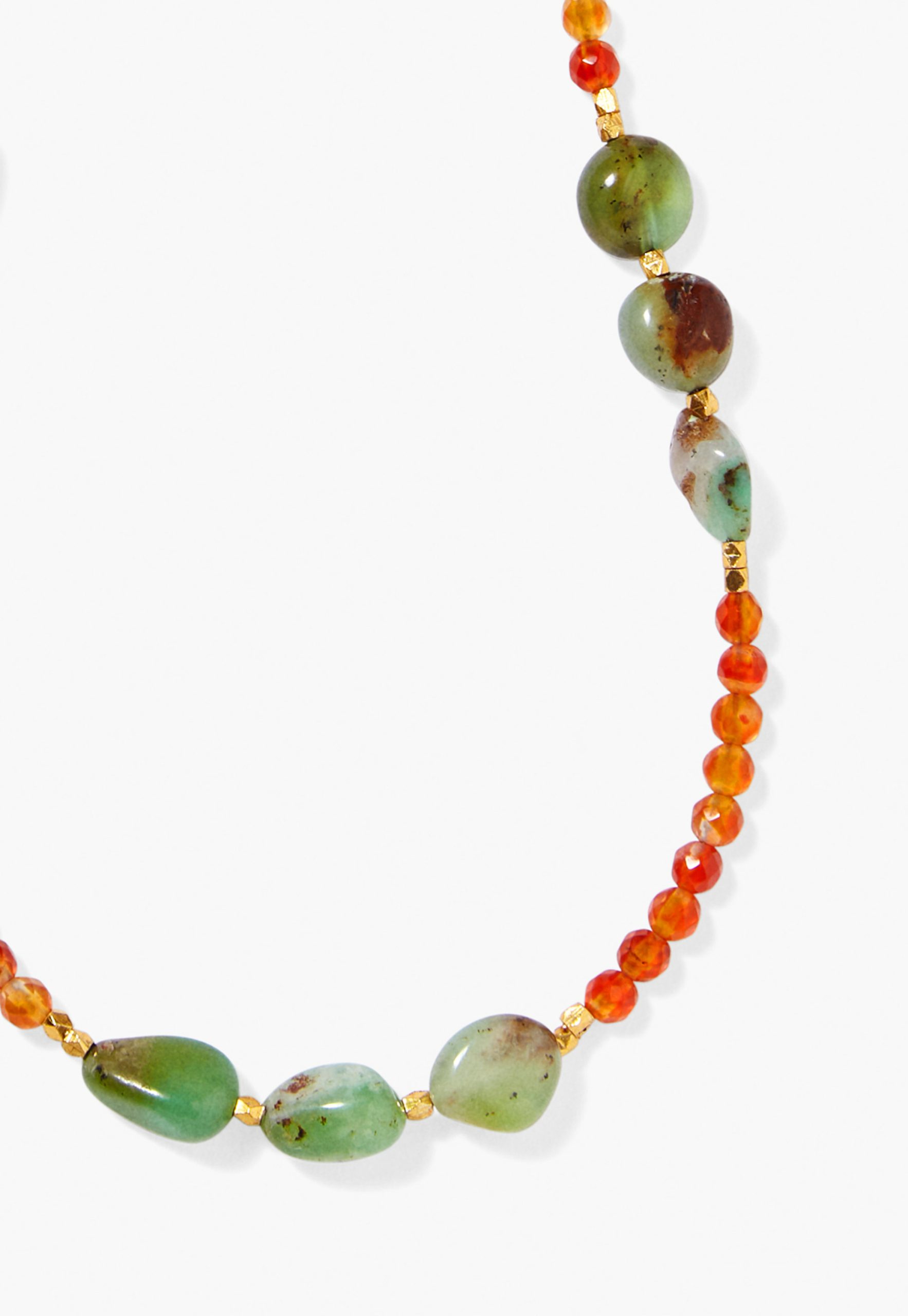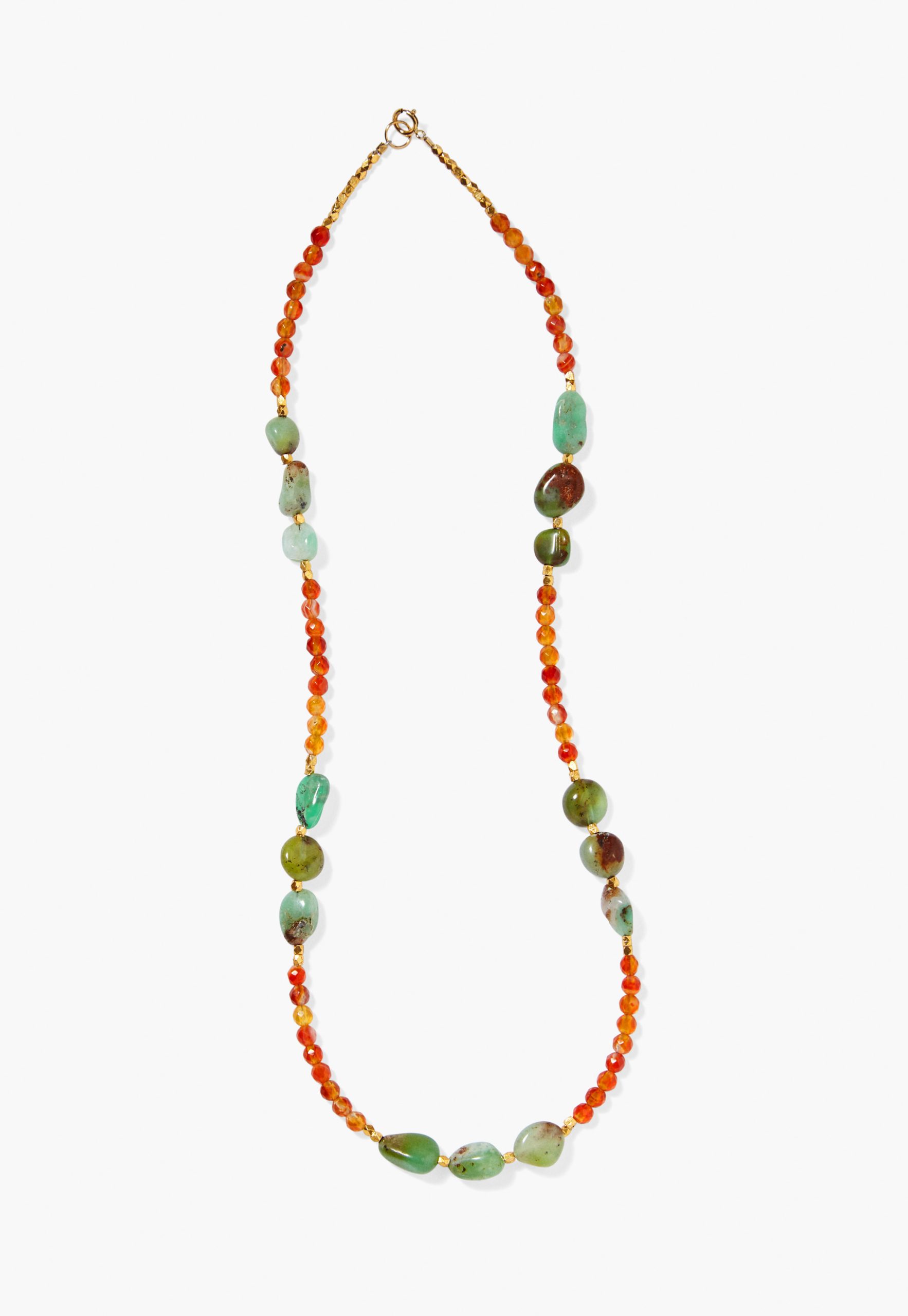 A beaded necklace with a captivating combination of agate and gold fill brass beads, designed to make a bold statement. The alternating bead pattern creates a visually striking rhythm, with the natural variation of the agate beads adding unique character to each piece.