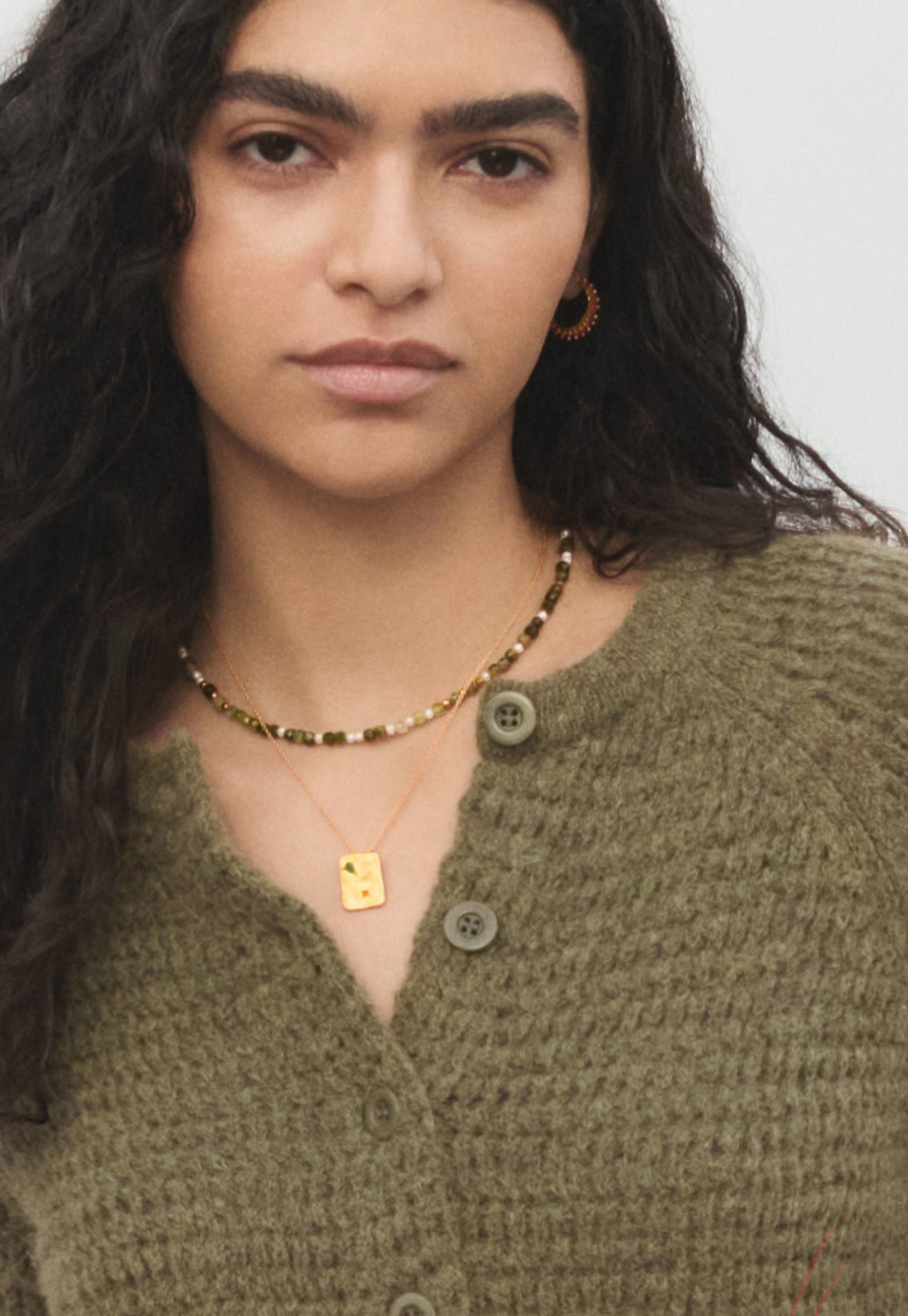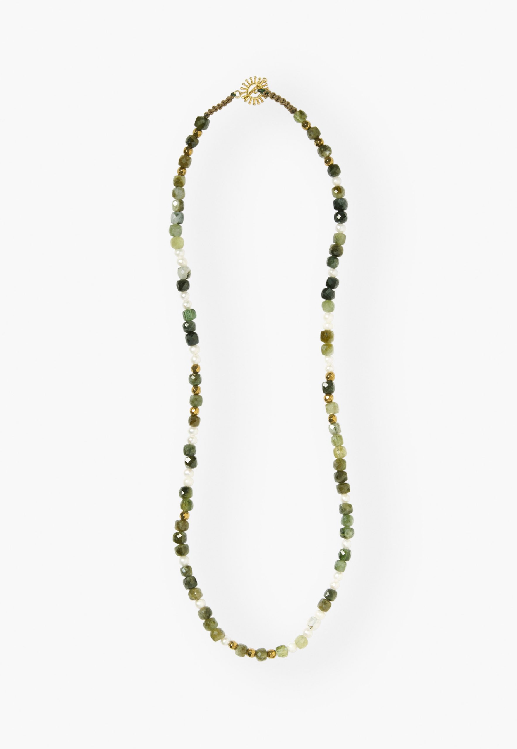 - Green Tourmaline, Pearl and Hematite mini sunburst beaded necklace