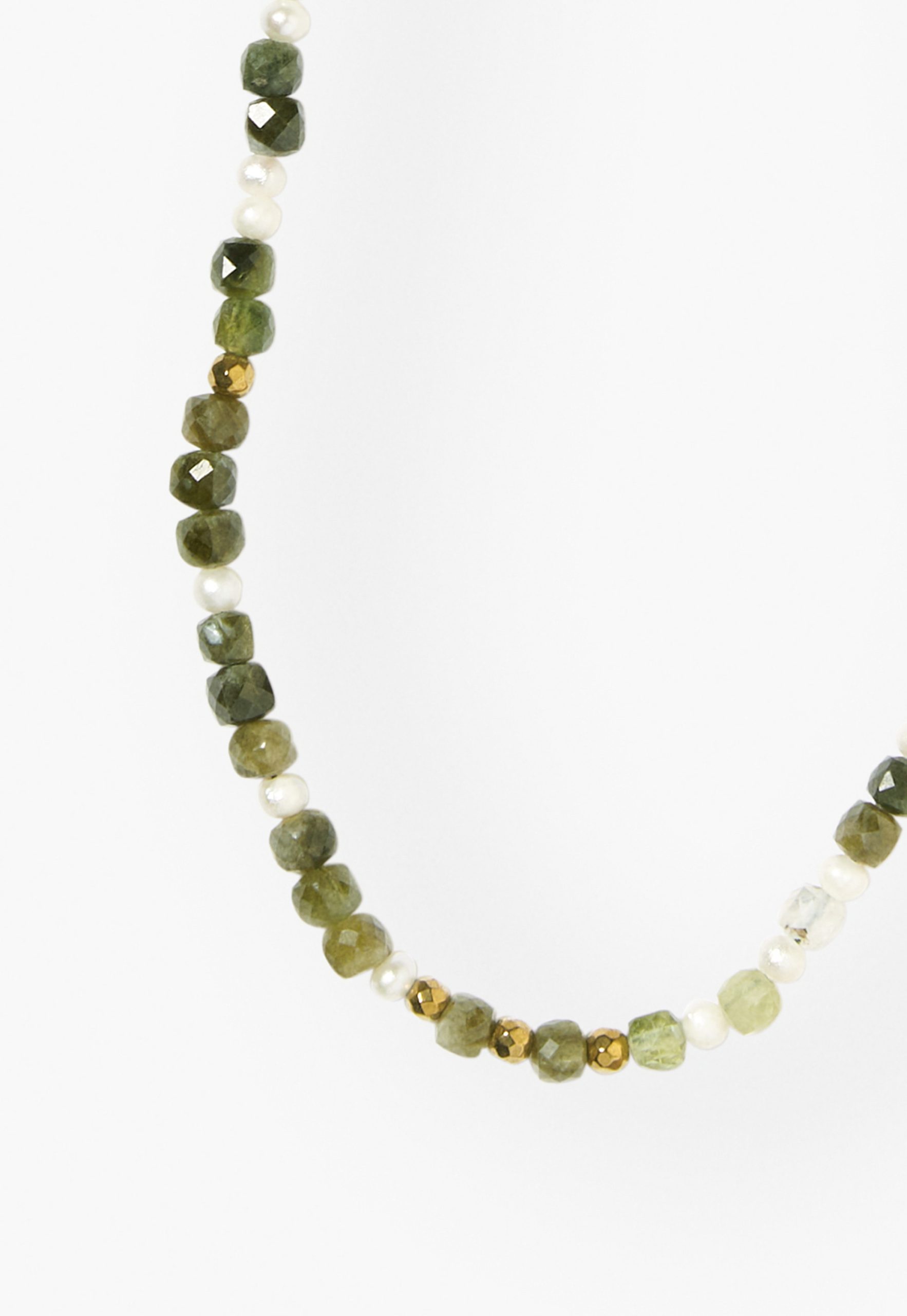 - 80% Green Tourmaline 5% Fresh Water Pearl 5% Hematite 10% 18ct Gold-Plated Sterling Silver