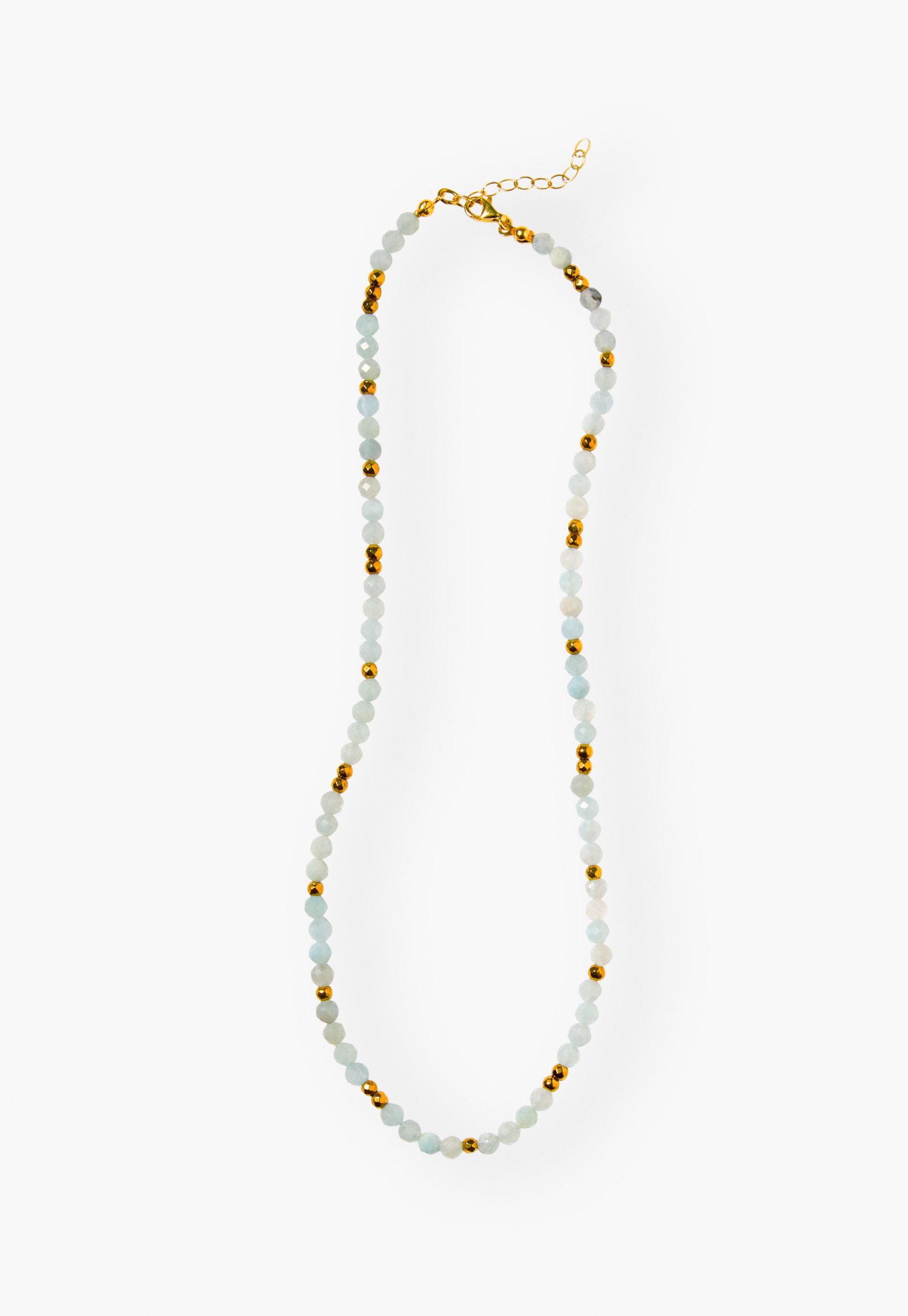 - 65% Aquamarine 25% Hematite 10% 18ct Gold-Plated Sterling Silver