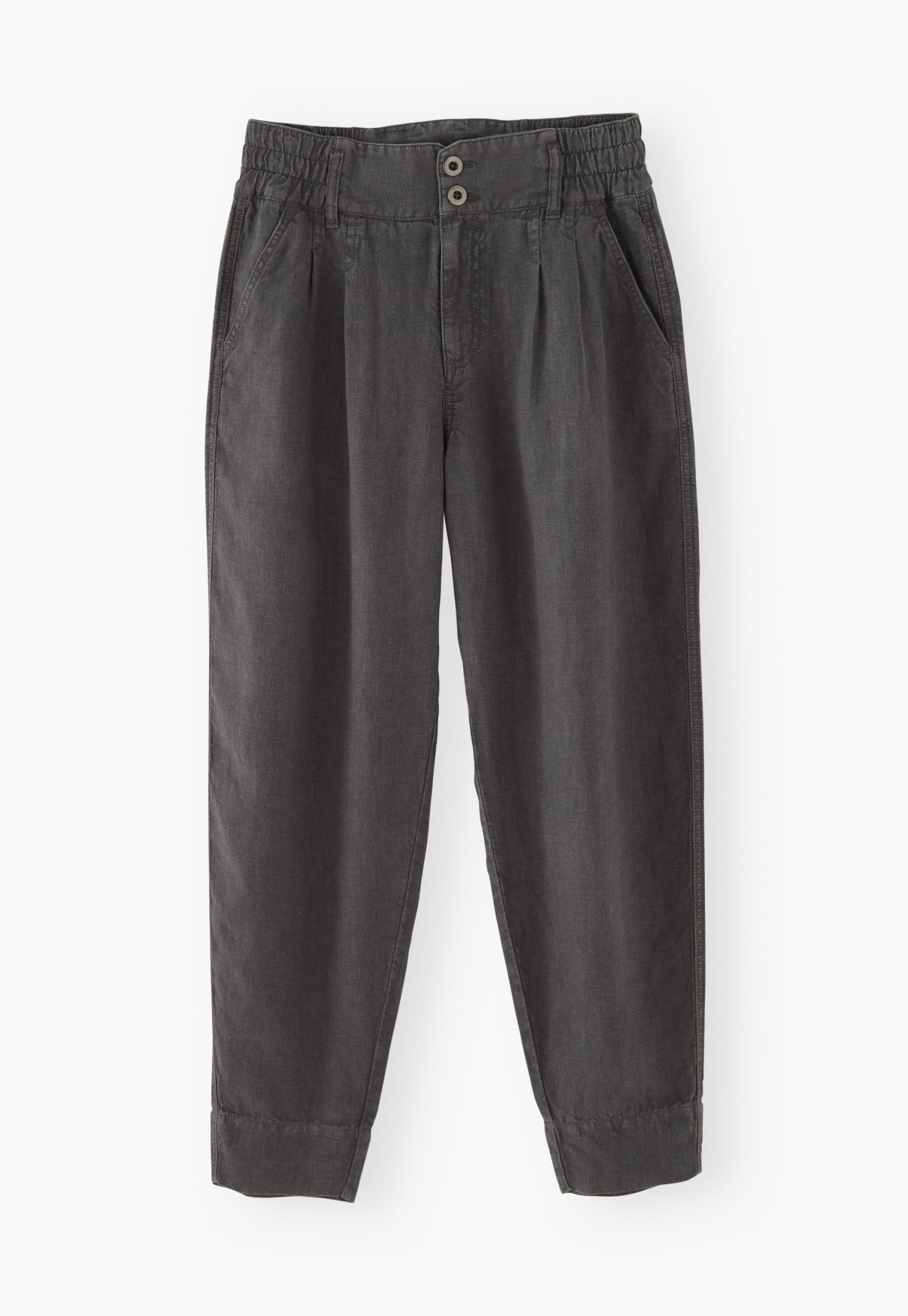 The wide part-elasticated waistband creates a neat fit at the waist of these garment-dyed linen trousers. With a relaxed tapered leg, they’re cleverly cut to fit and flatter.