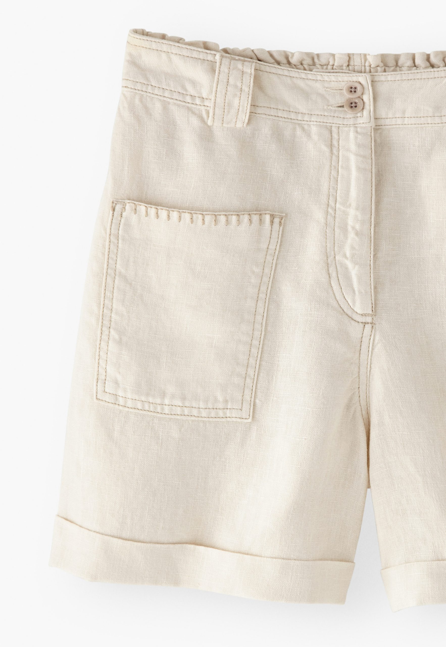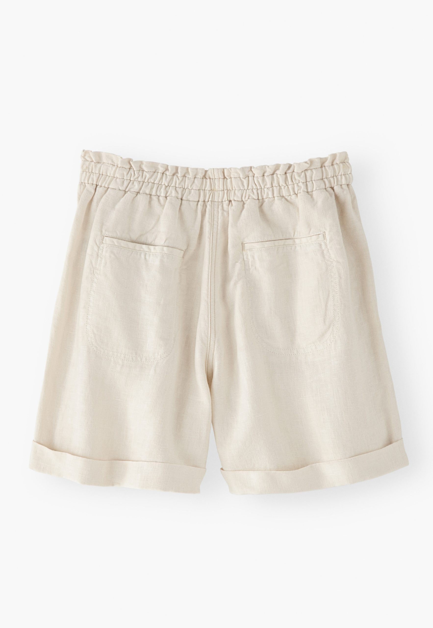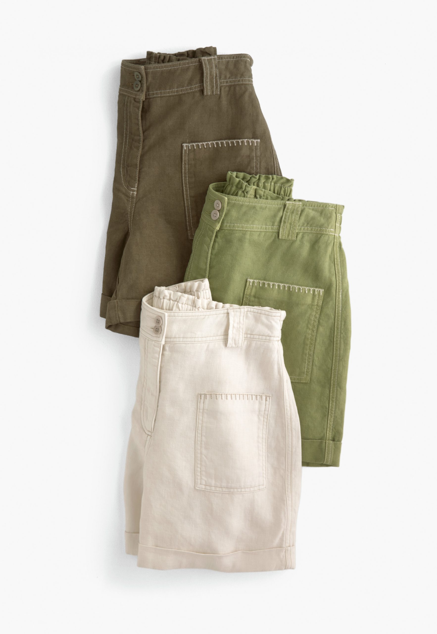Essential summer shorts in garment-dyed linen. Overstitched in contrast thread for a subtle detail, they’re high-waisted and wide-legged and the elasticated back at the waist ensures a great fit.