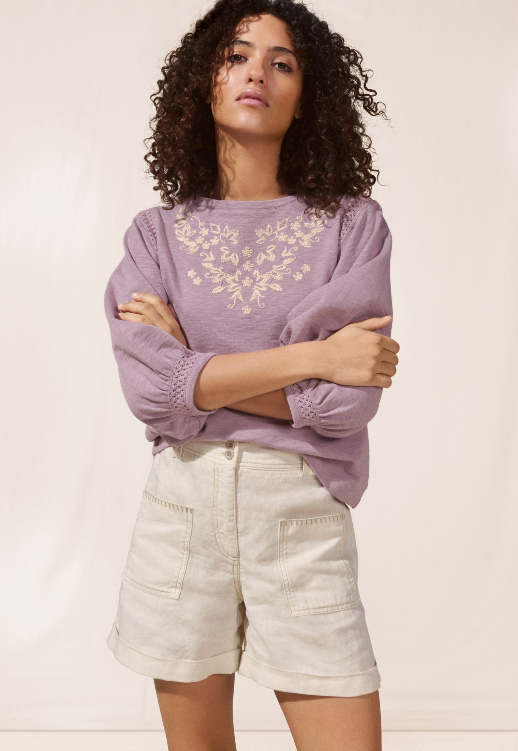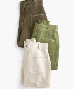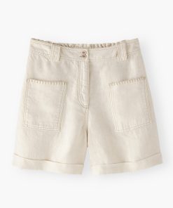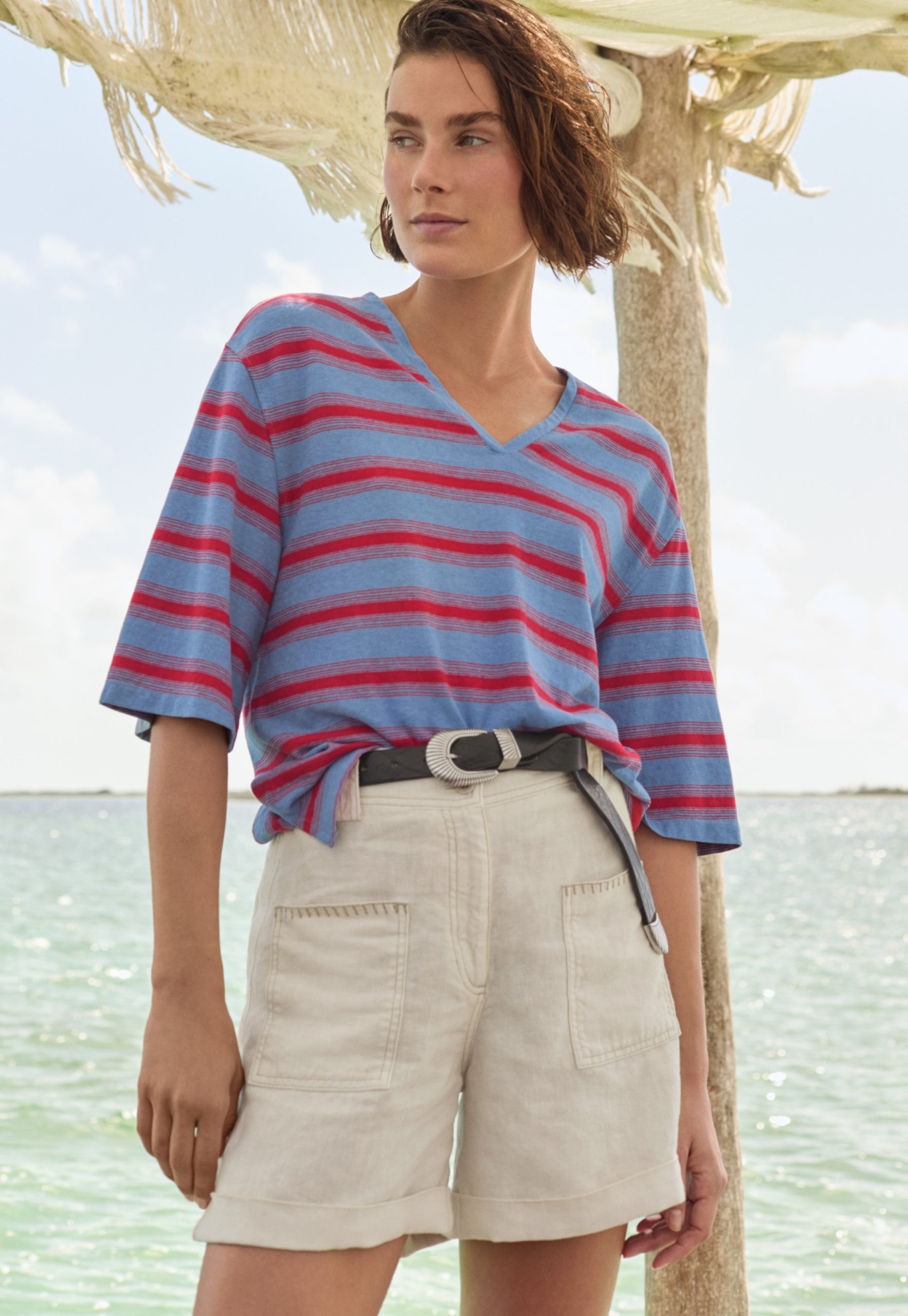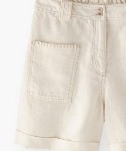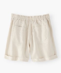 Essential summer shorts in garment-dyed linen. Overstitched in contrast thread for a subtle detail, they’re high-waisted and wide-legged and the elasticated back at the waist ensures a great fit.