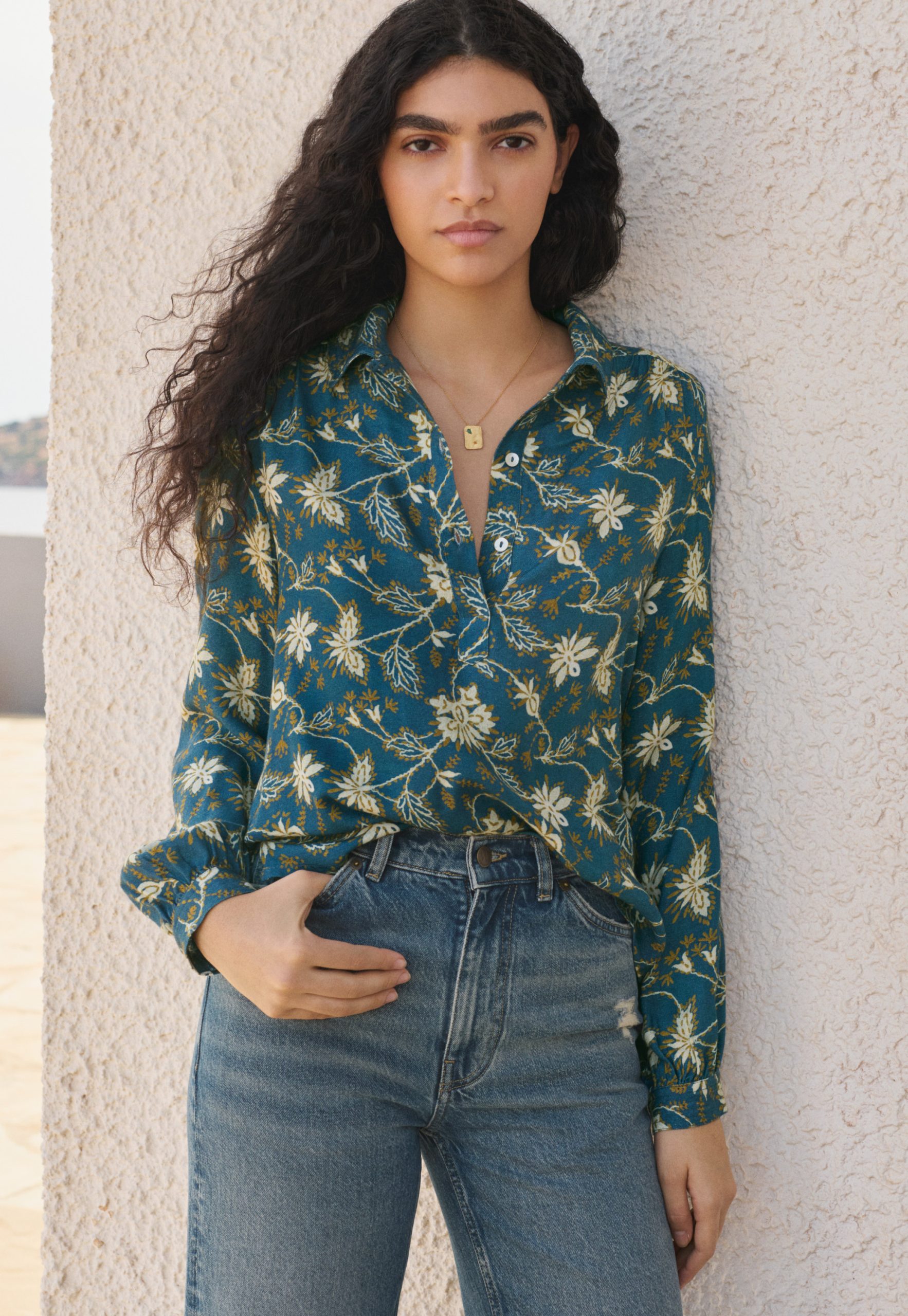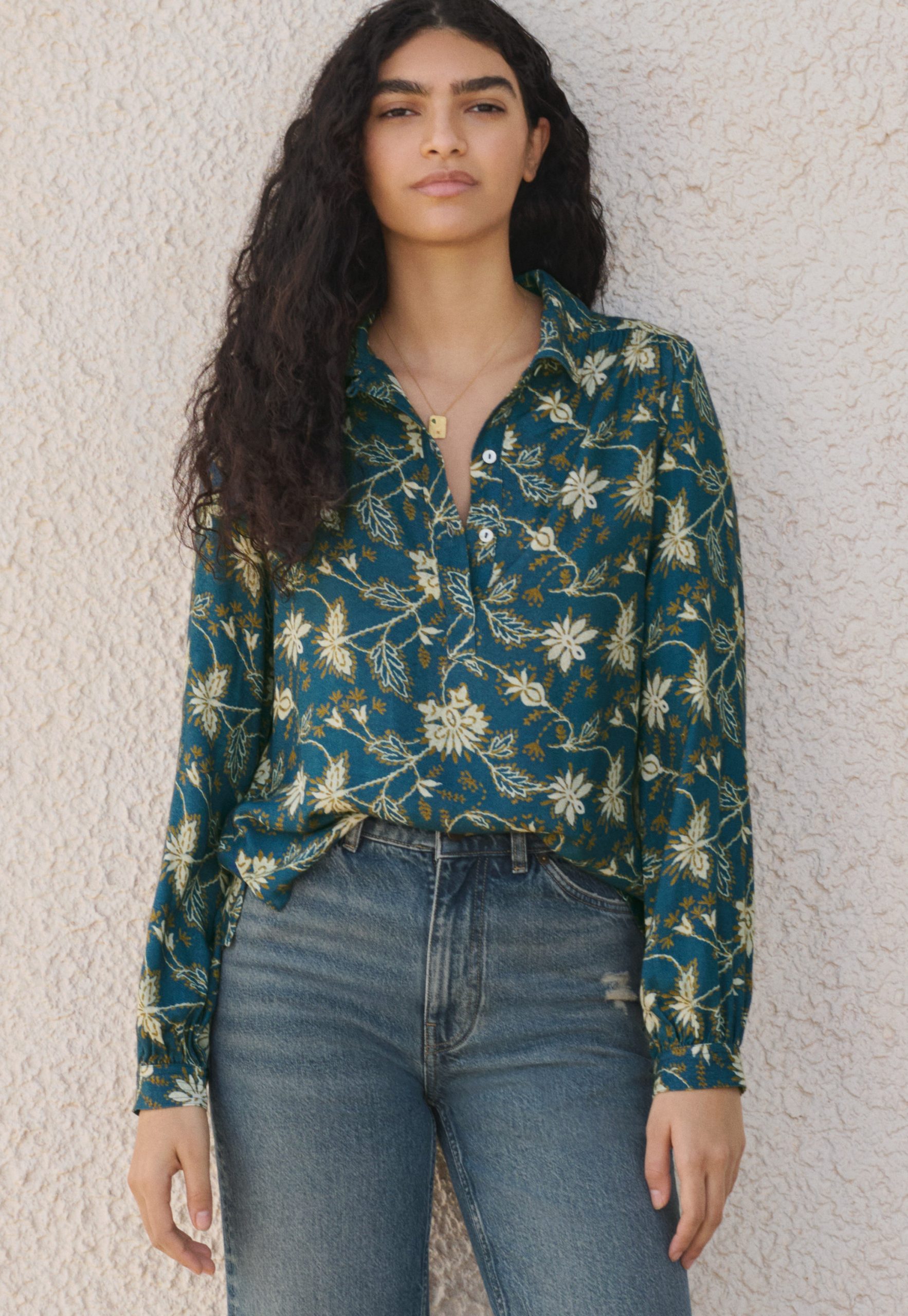 Wrap London Women’s Printed Blouse | Indigo Ochre