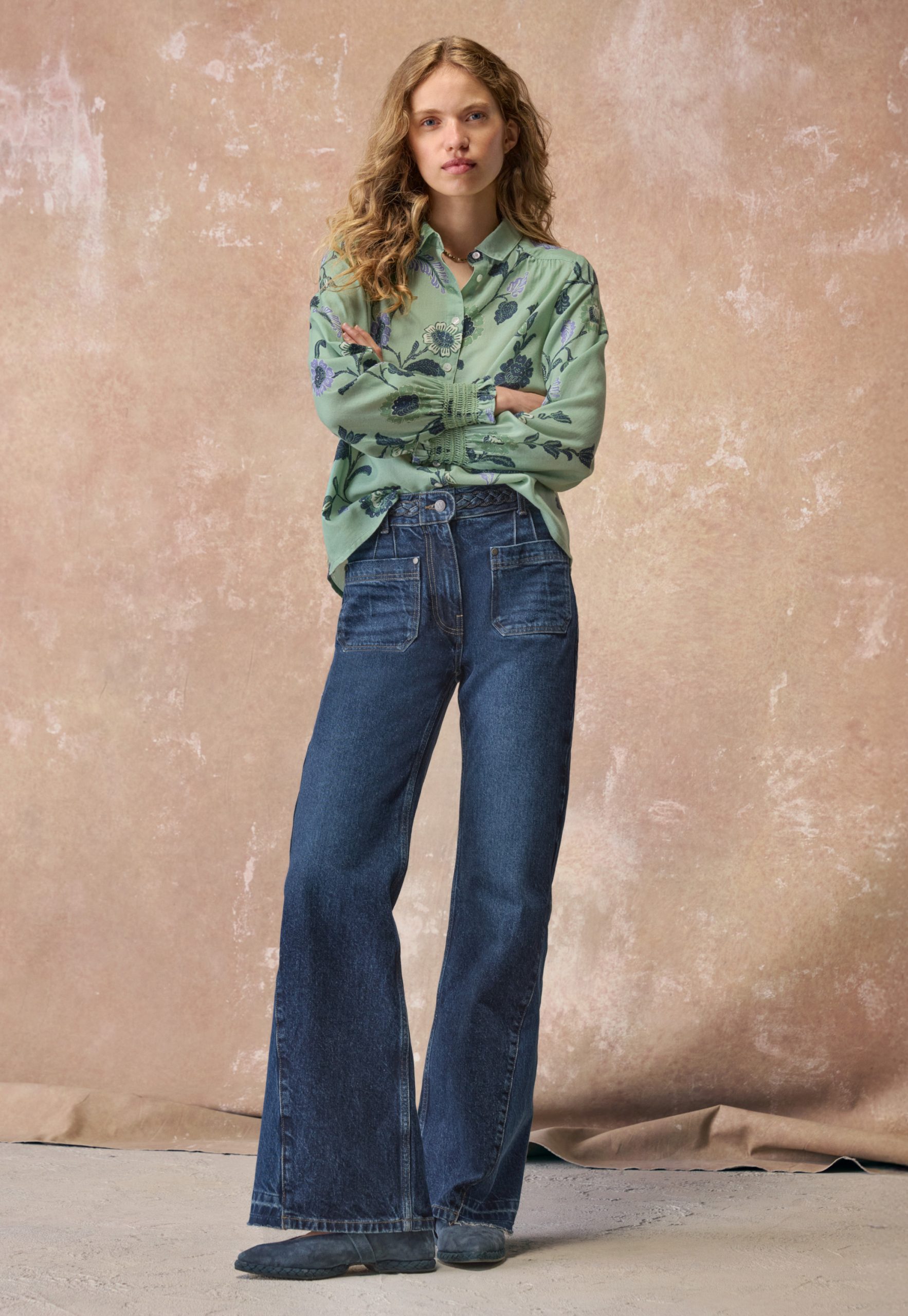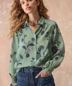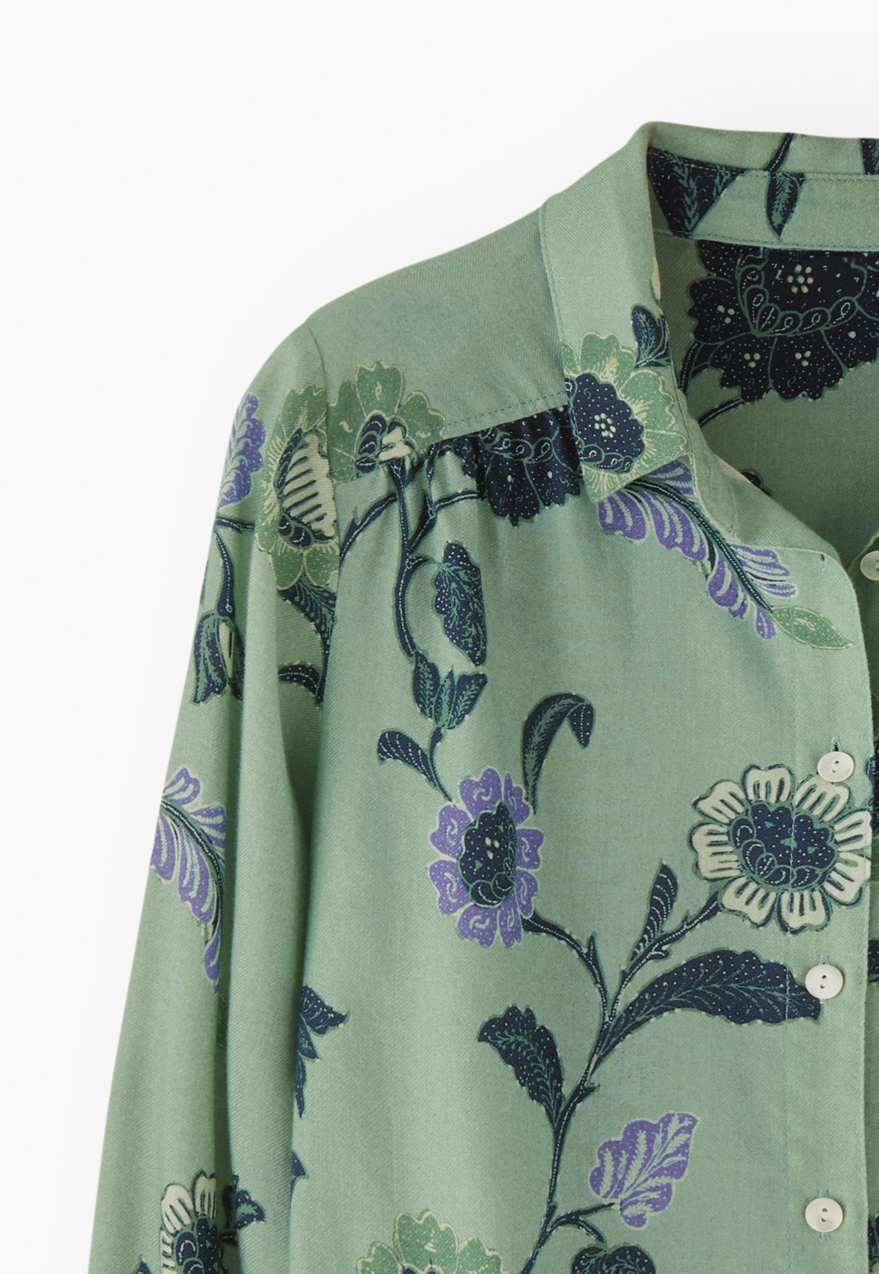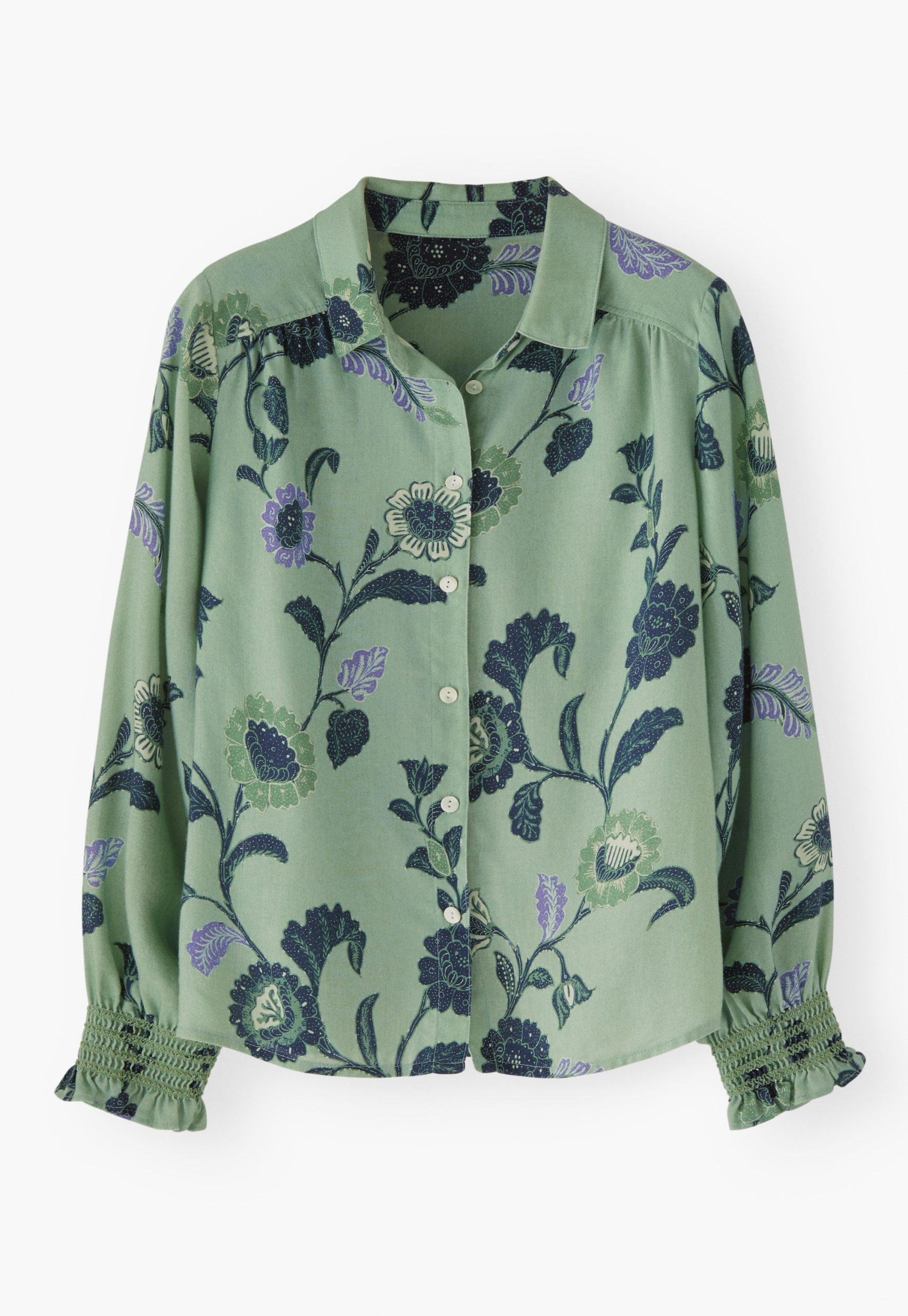 A bold, botanical exclusive Wrap London print flows over this soft blouse in lyocell cotton and wool. Light and warm, it’s beautifully detailed with shirring at the cuffs and gathers at the shoulders. Something special to wear with denim.