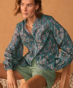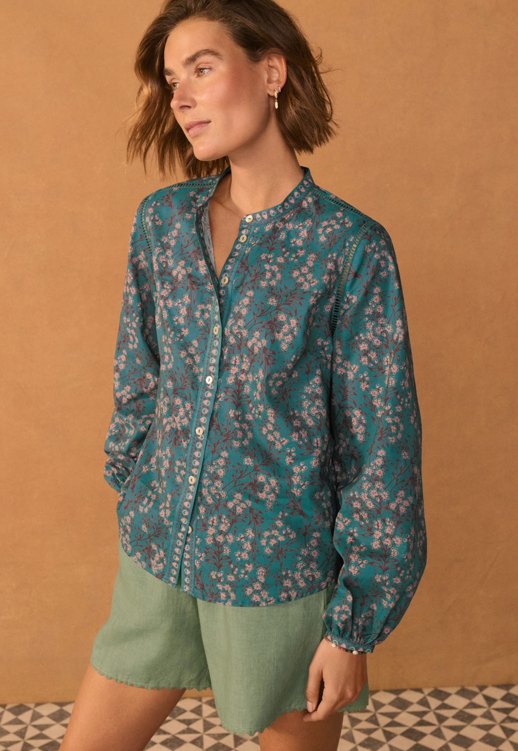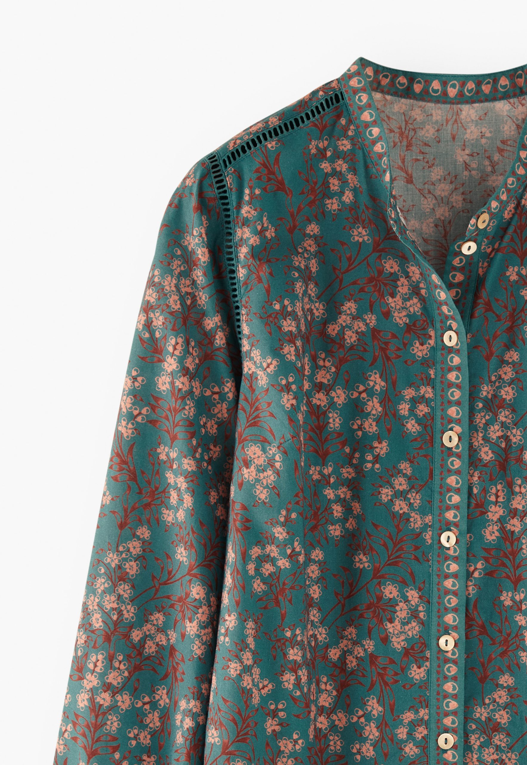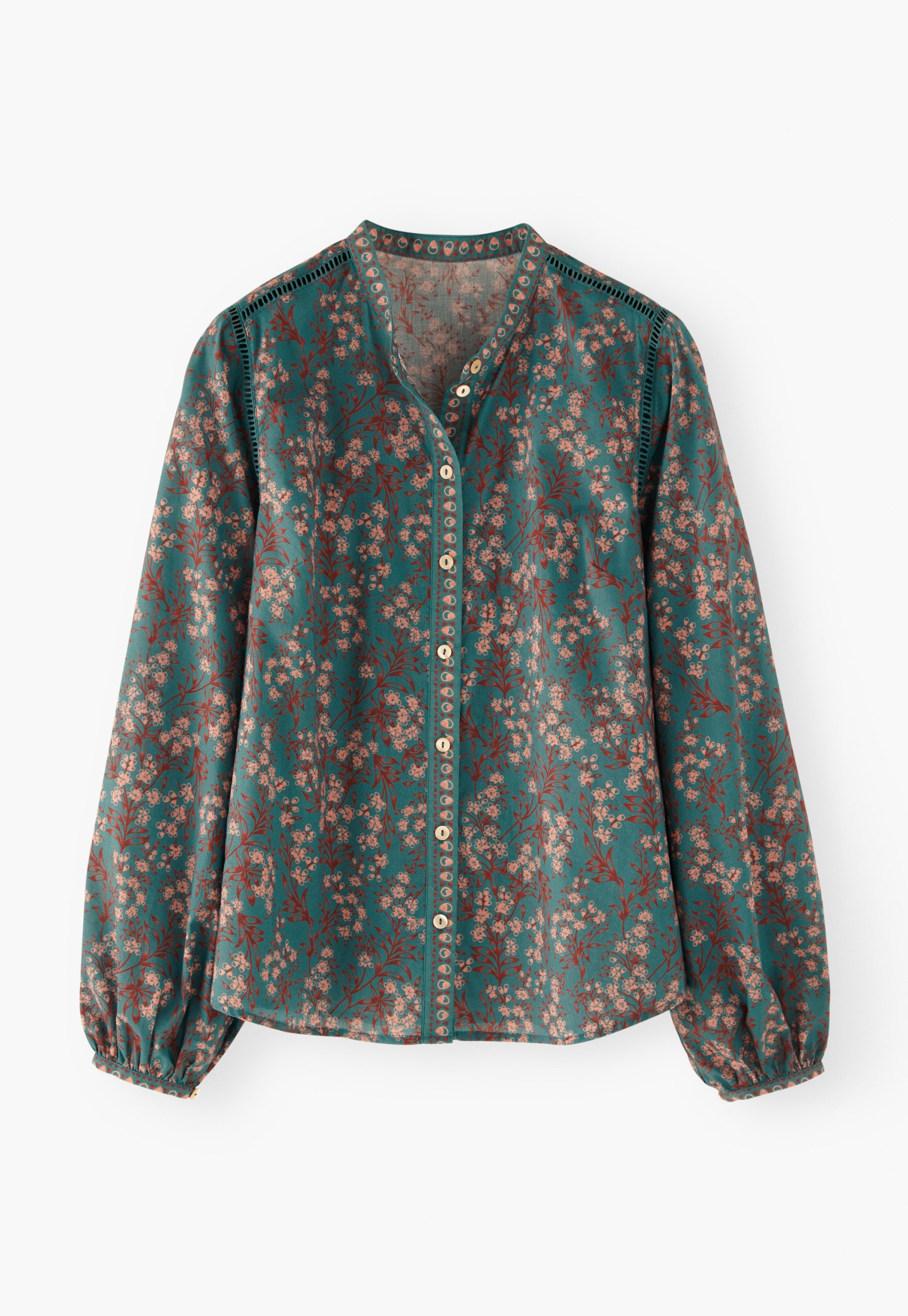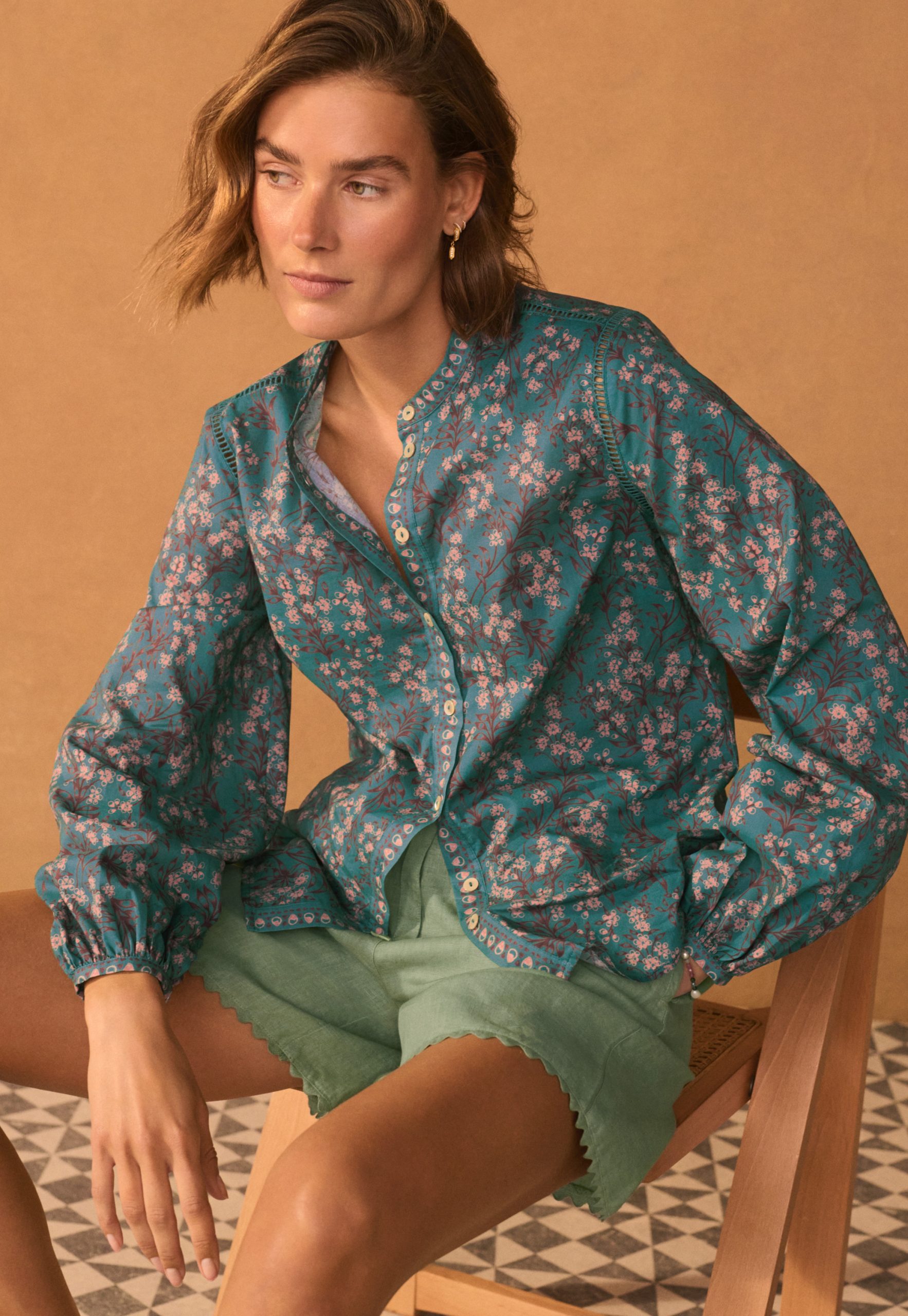 A blouse that’s the opposite of boring, in crisp lightweight cotton featuring an exclusive Wrap London print. In a relaxed fit with a round neckline, there are ladder lace inserts at the shoulders and full-length bold blouson sleeves.