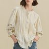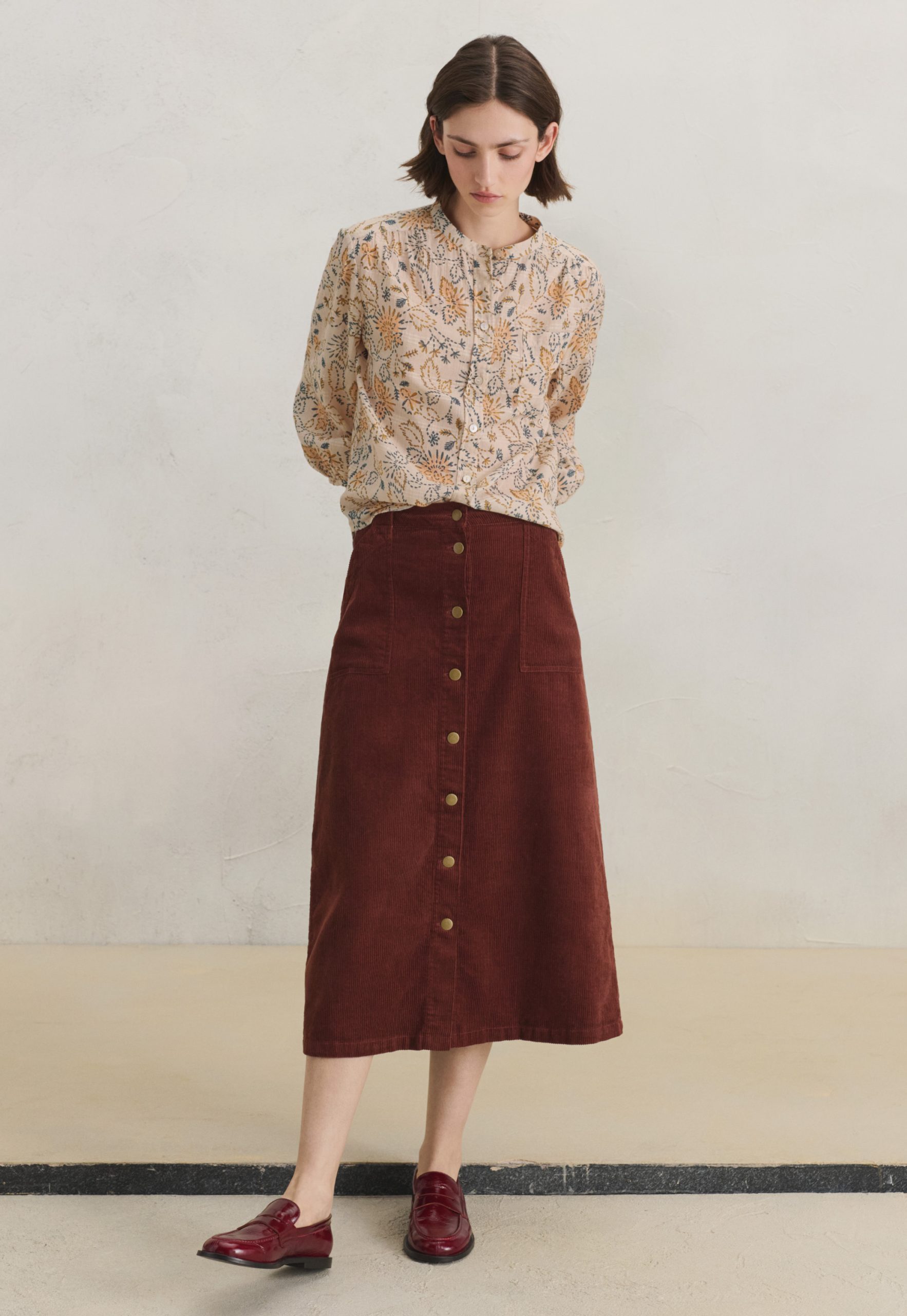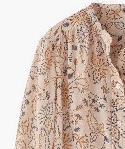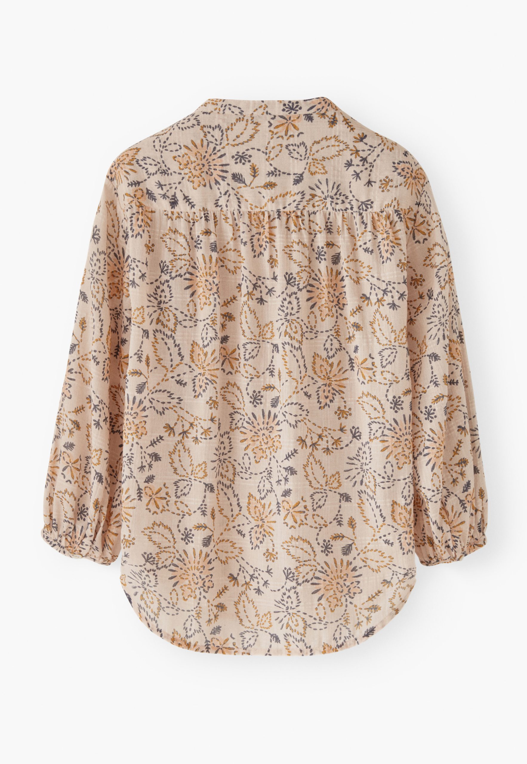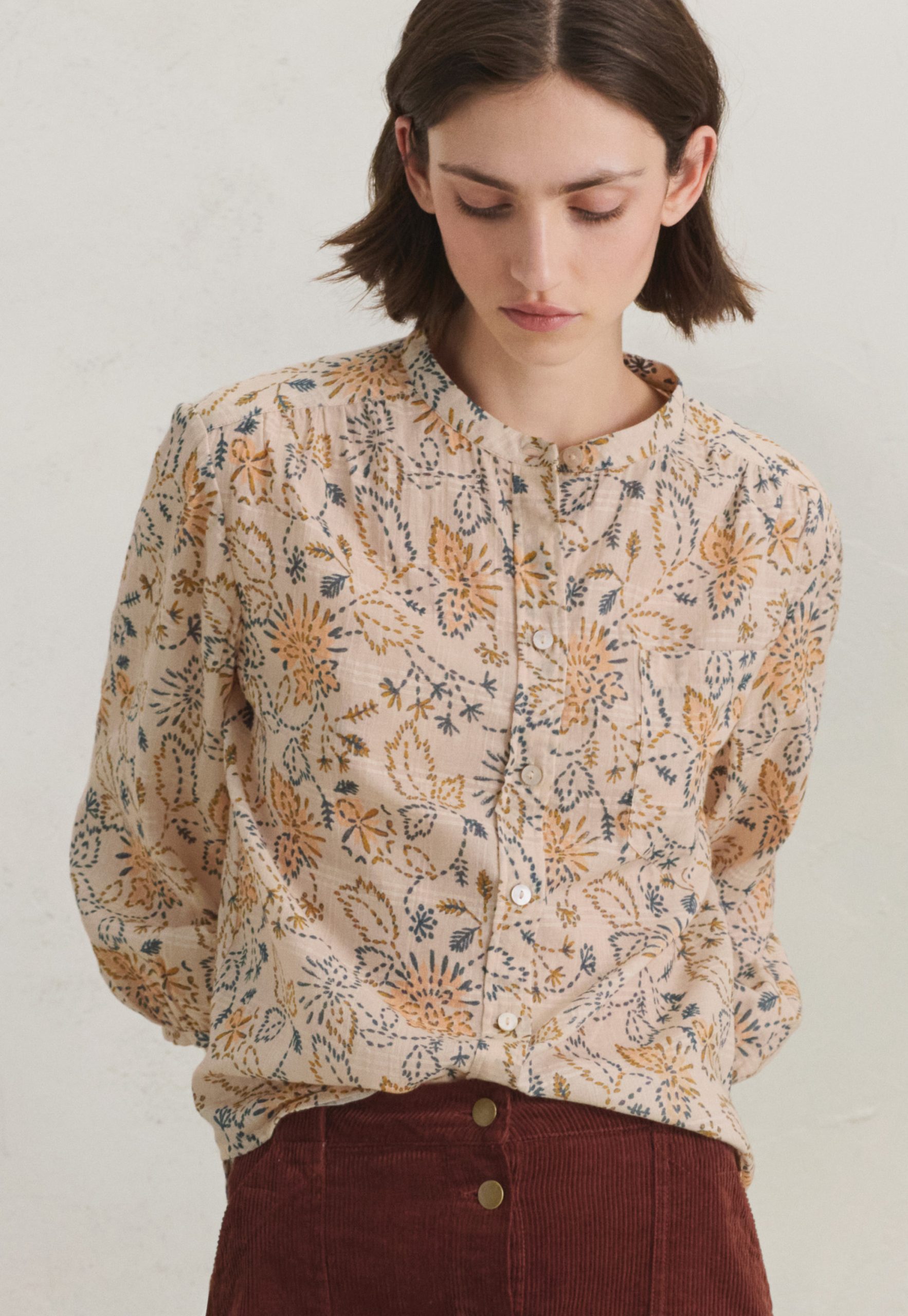 A cheering printed shirt in lightweight cotton in a relaxed fit with a neat round neckline and breezy three-quarter length blouson sleeves. A great pairing with denim or worn undone over a T-shirt or vest.