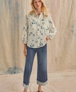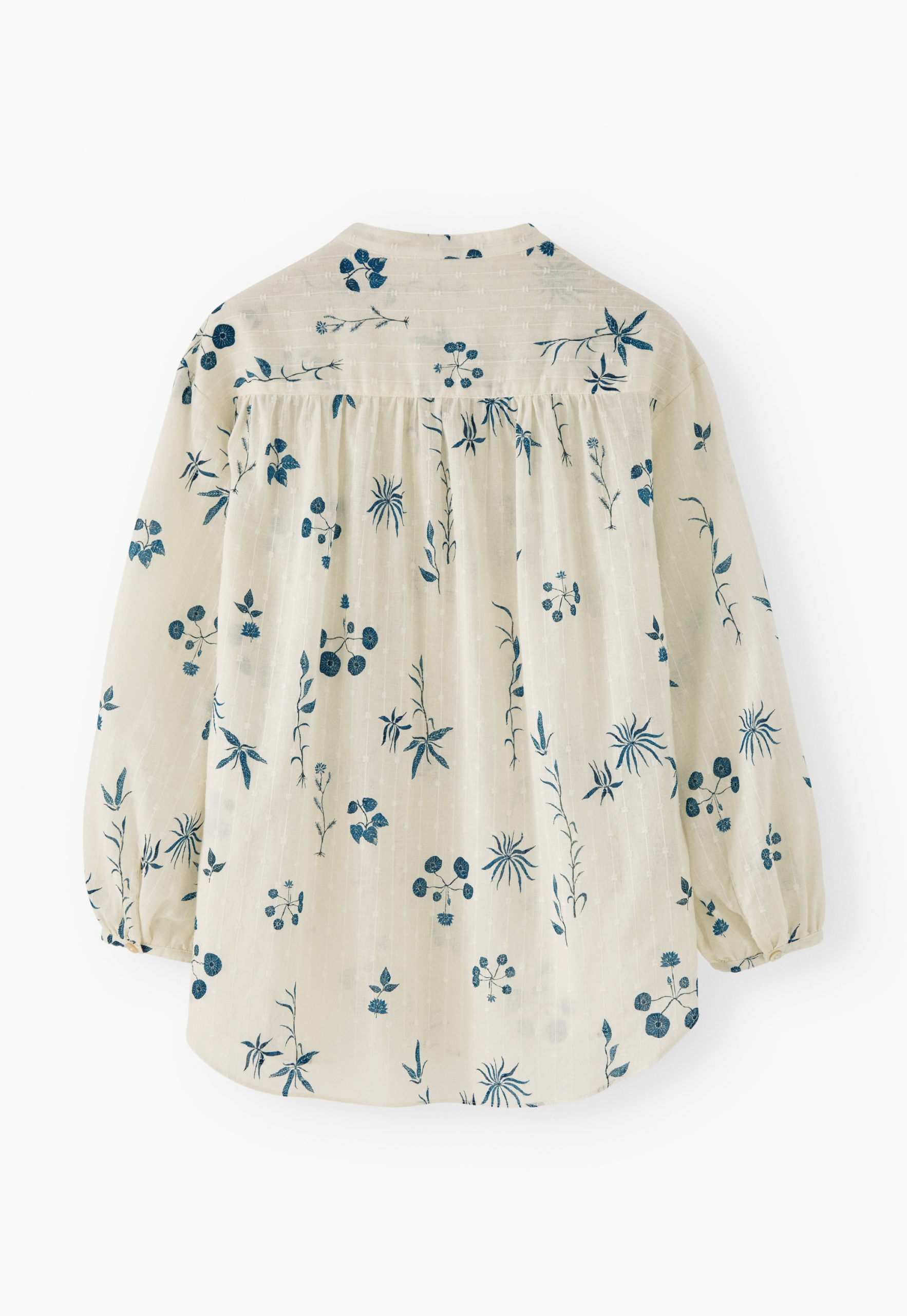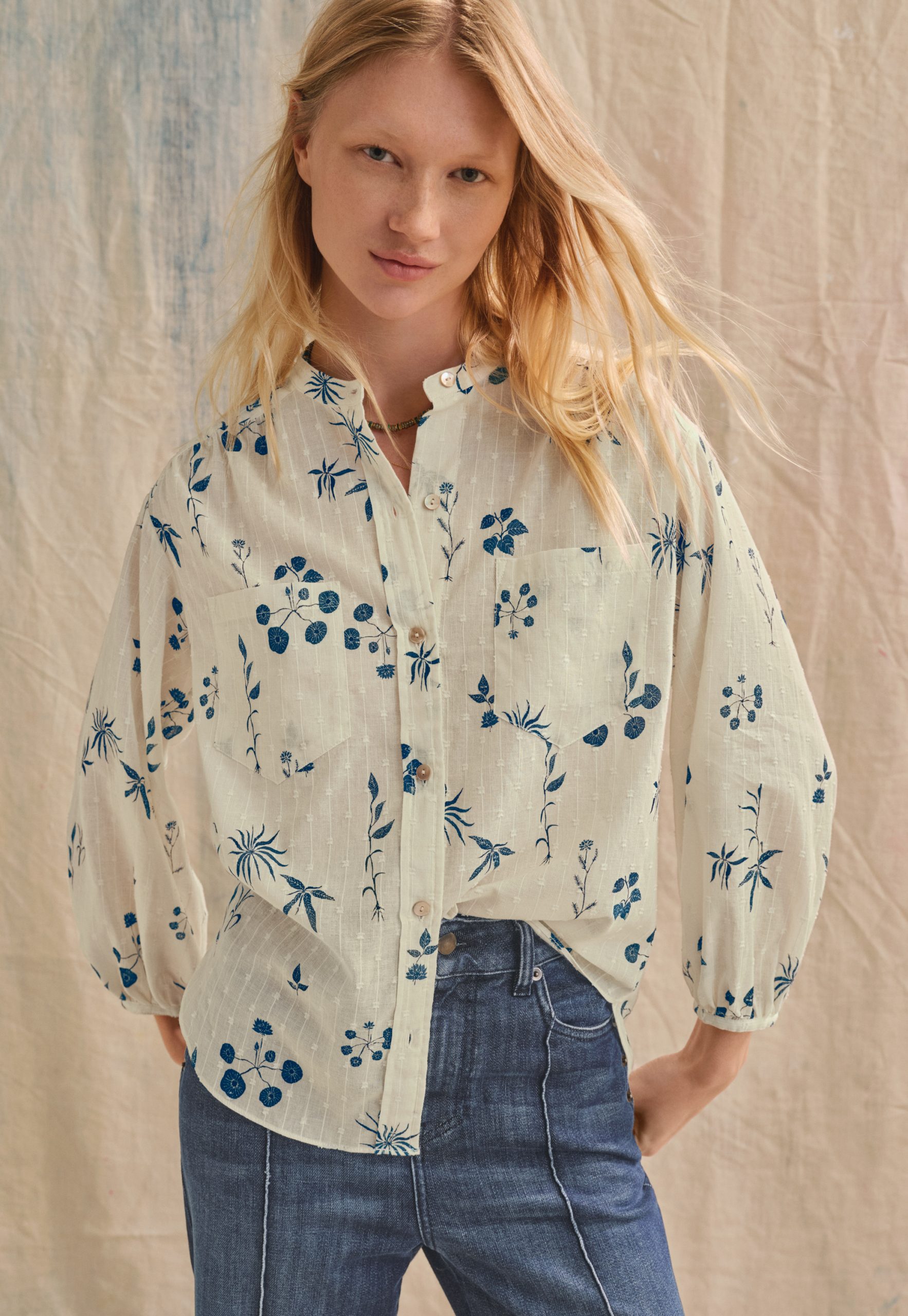 Lightweight Swiss-dot cotton shirt featuring an exclusive Wrap London botanical print. With a curved hem that’s slightly longer at the back, perfect to tuck into your jeans or shorts.