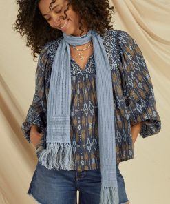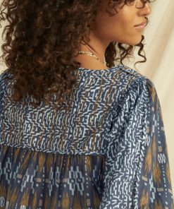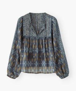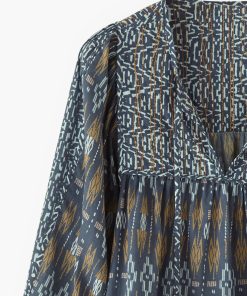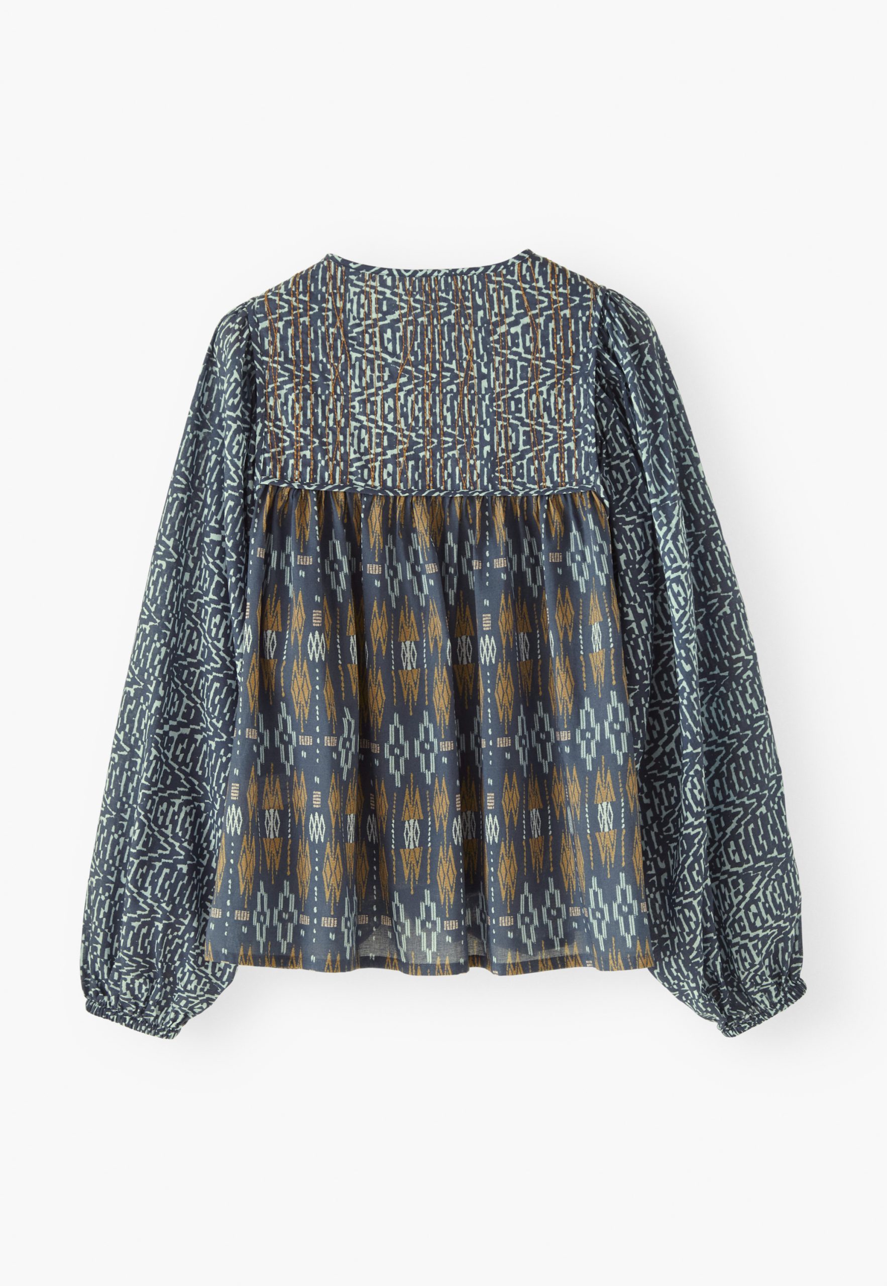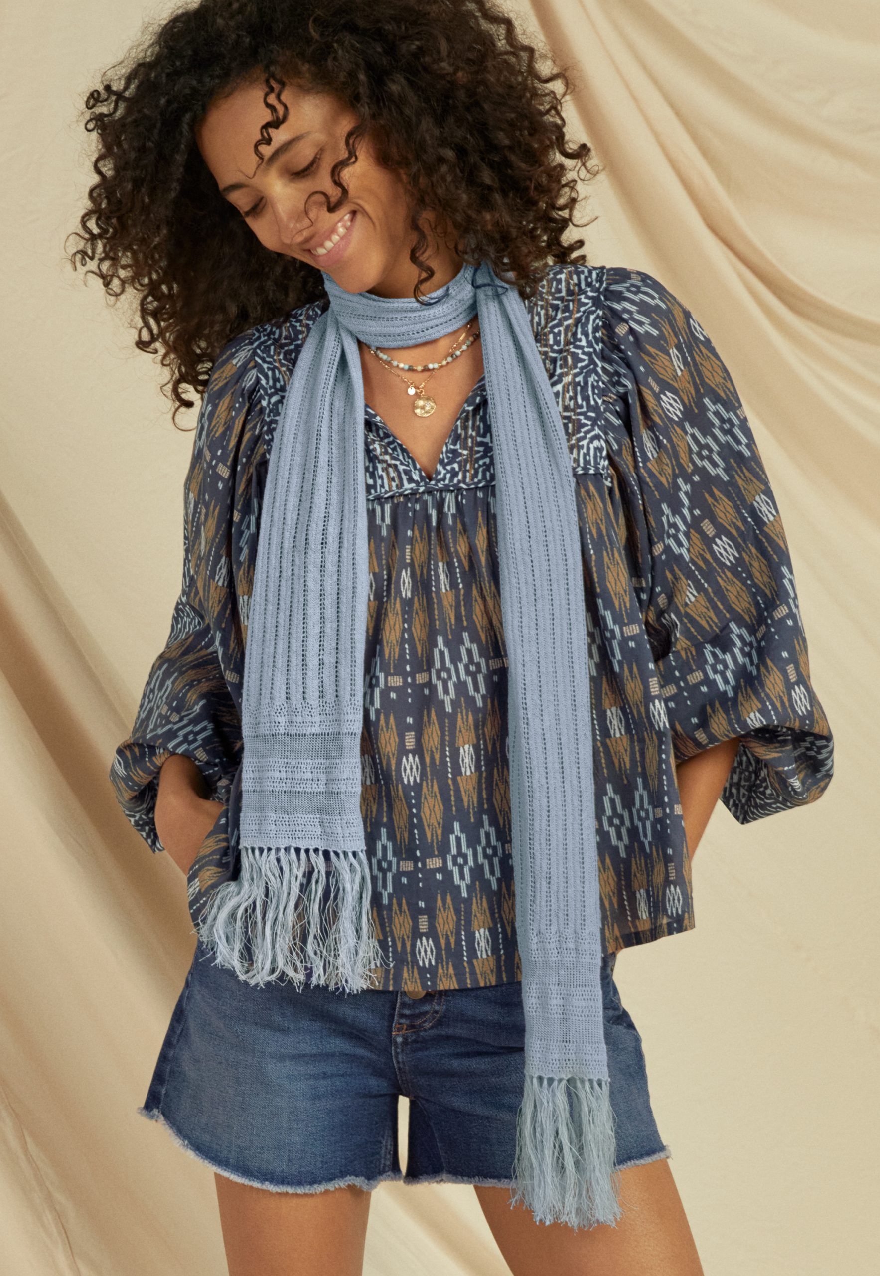 A soft and lightweight cotton blouse featuring an exclusive Wrap London print. We love the notch-neckline with its embroidery detail and playful tassel tie detail.