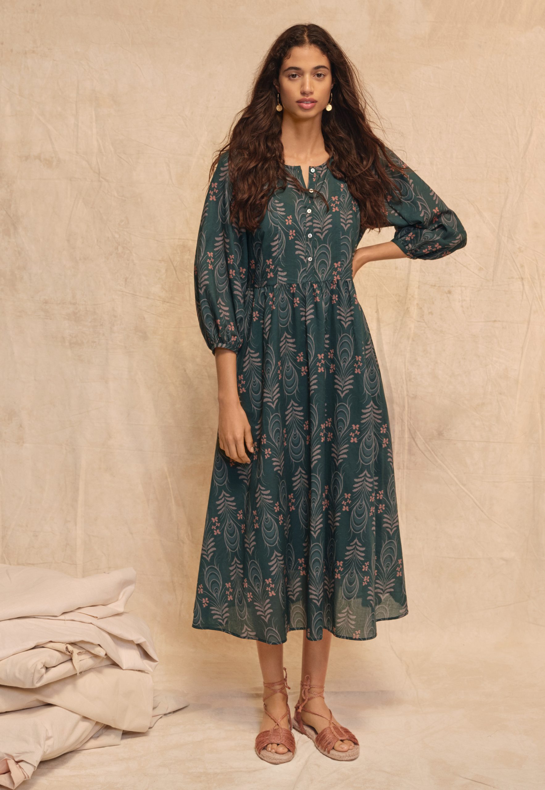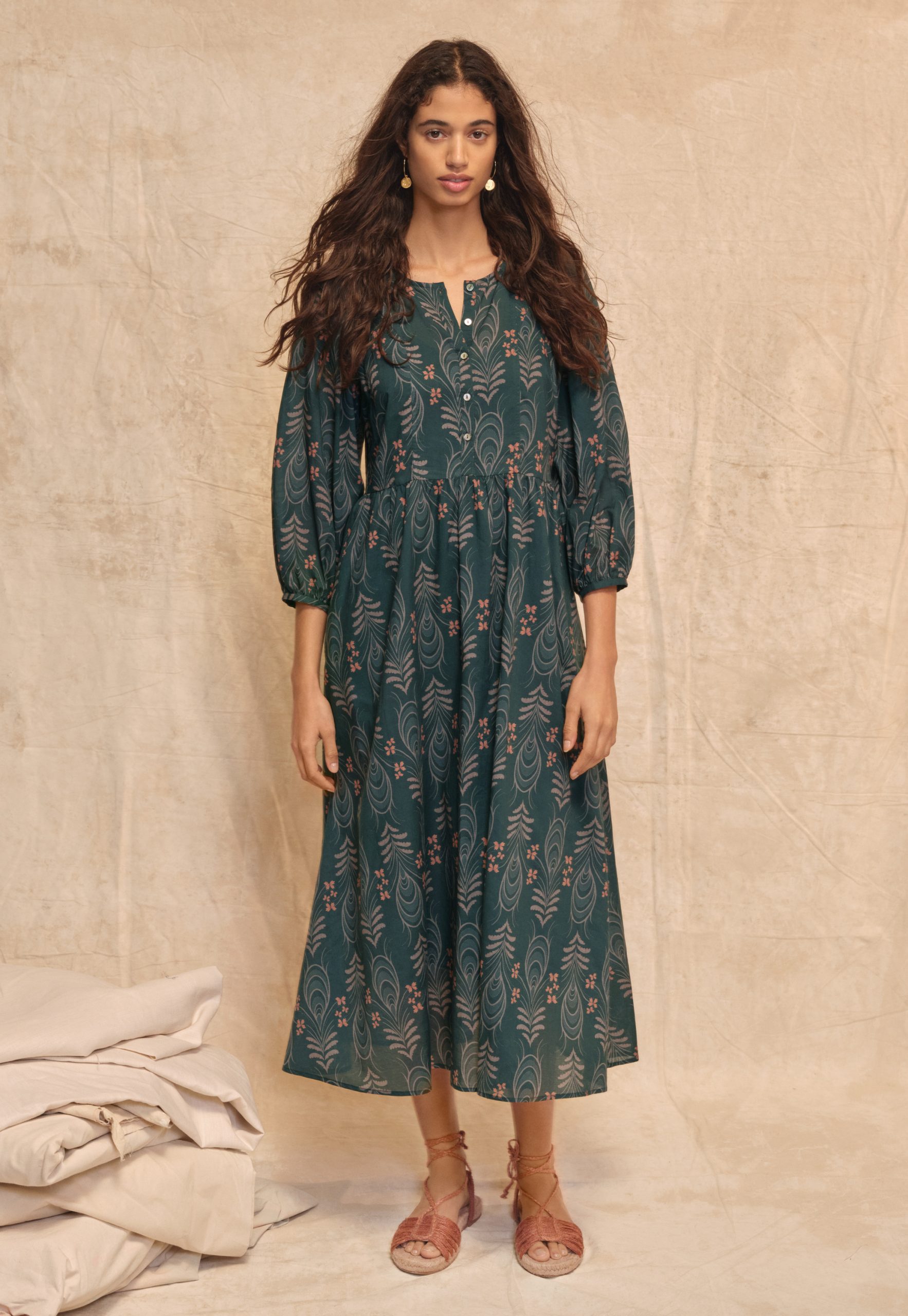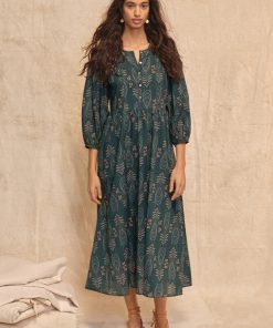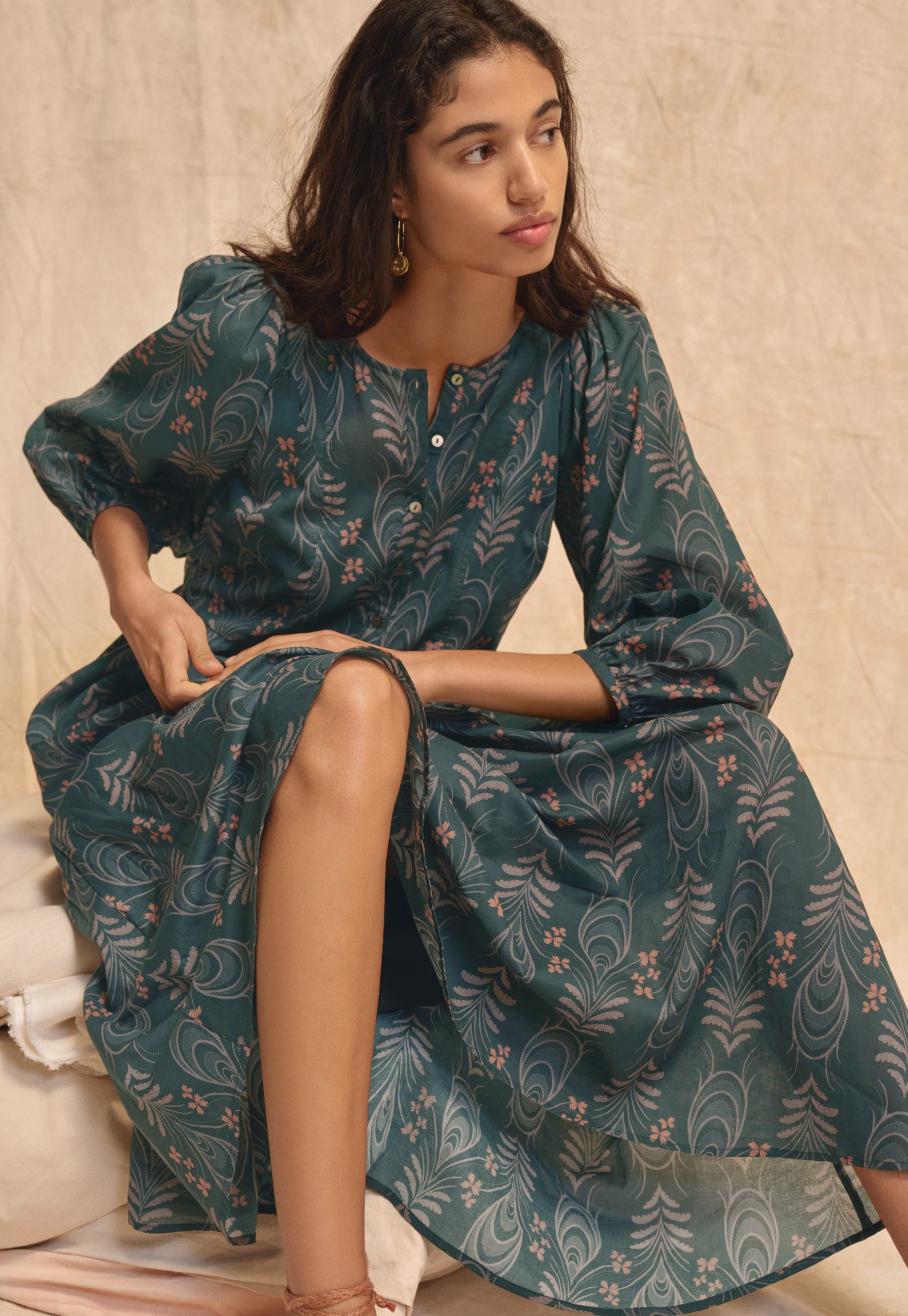 A beautiful, botanical, exclusive Wrap London print flows across this crisp cotton maxi-dress that’s perfect to dress up for a special occasion or to just feel special.