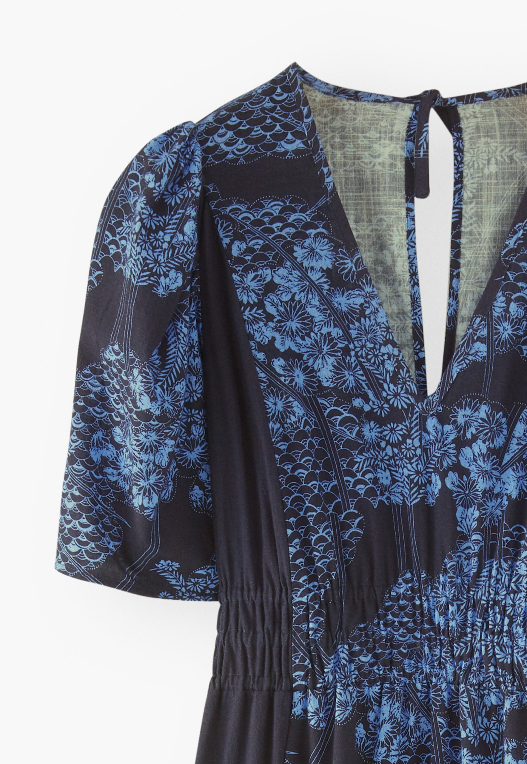 - Deed-notch at back neck with tie fastening