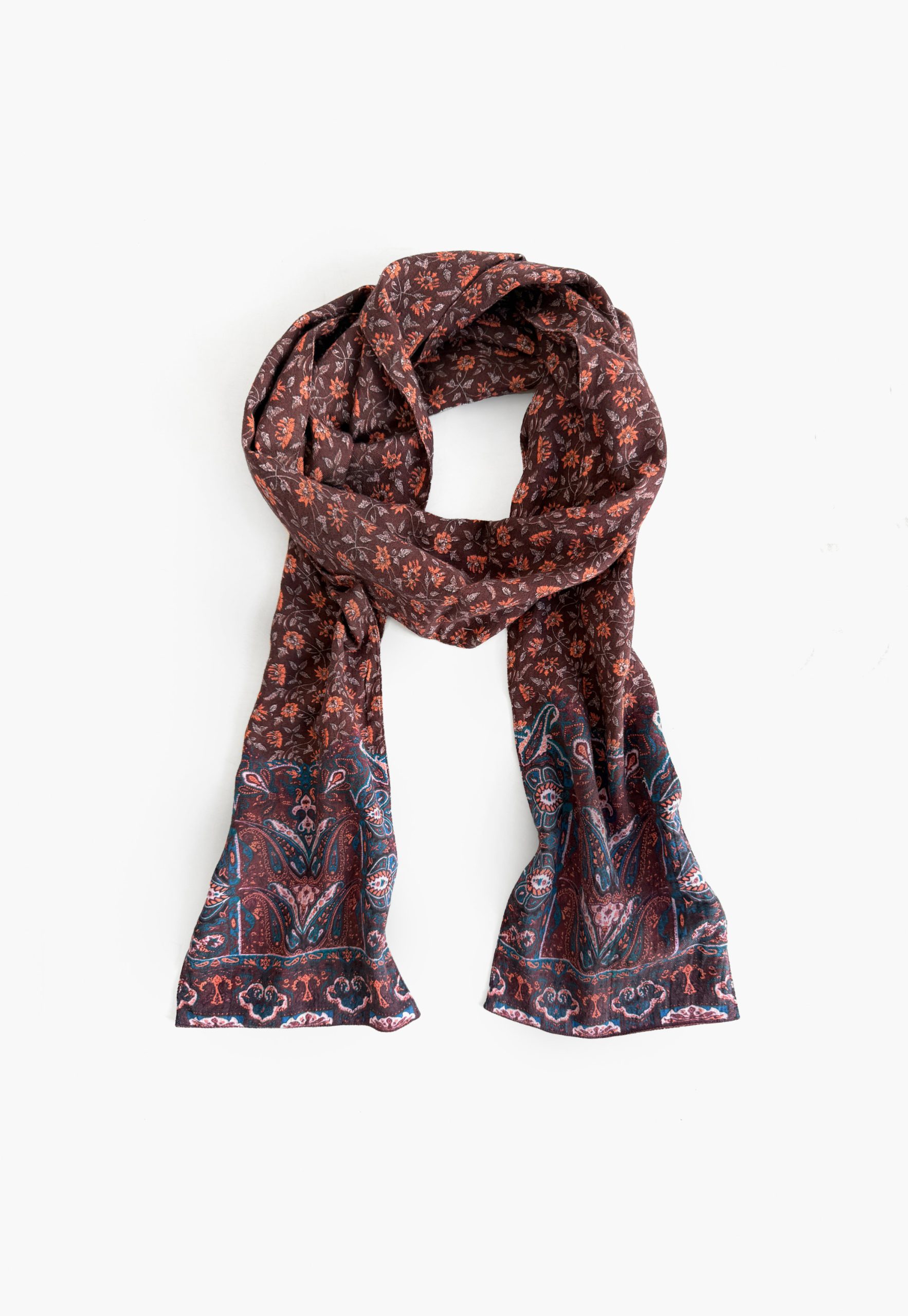 A double-sided, long cotton scarf, that is soft to the touch. Designed with an exclusive Wrap London print it is overprinted at the hem with a contrasting pattern.