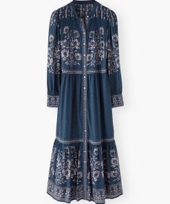 A relaxed, fluid dress that’s ready to be your new favourite outfit. In a lightweight cotton and modal blend with a subtle stripe overprinted with an exclusive Wrap London floral pattern. With full-length blouson sleeves, special shirring details at the front and back yoke and a dramatic deep hem.