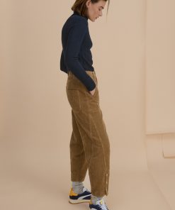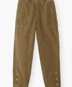 A fresh silhouette in fine-wale cord featuring a tapered leg that finishes with three buttons fastening at the ankle. Tailored for a neat fit at the mid-rise waist, these comfortable trousers meet the smart-yet-casual brief.