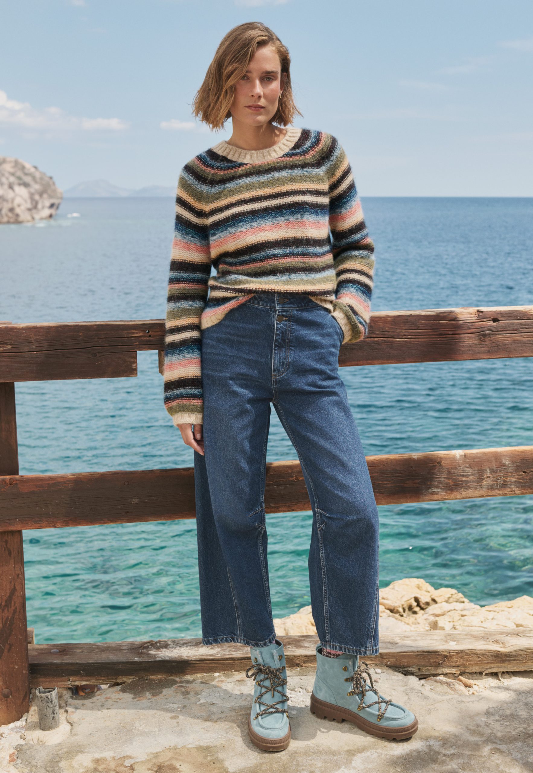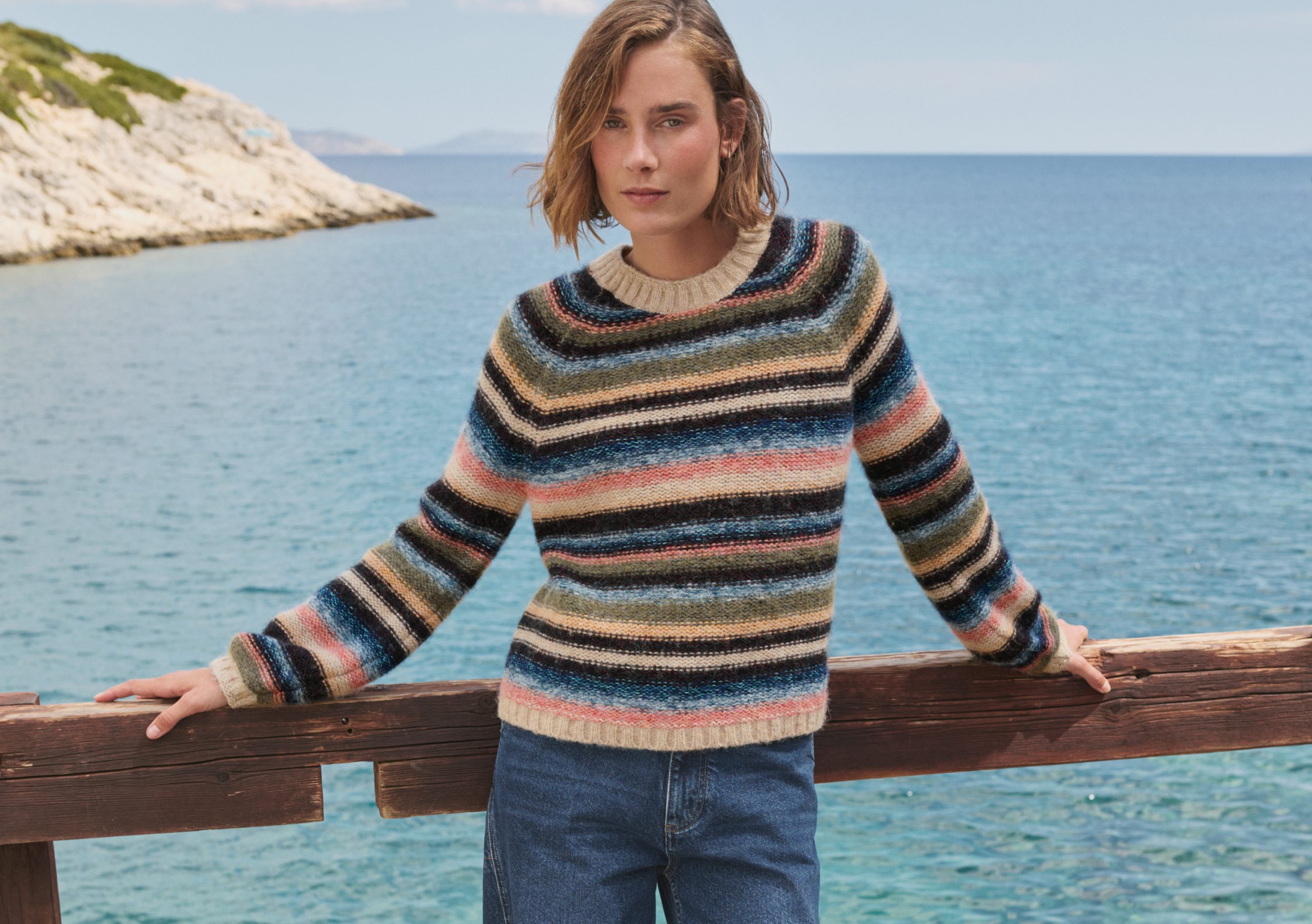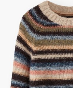 Deliberately styled to show the reverse stitches of the different-coloured knitted stripes, this soft and cosy sweater in a blend of alpaca, brushed cotton and merino wool is something different for your weekend wear.