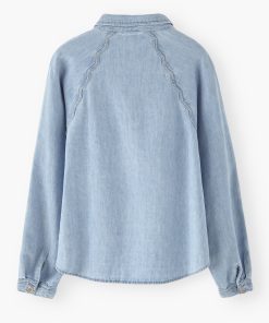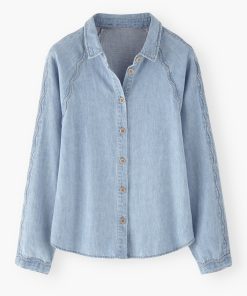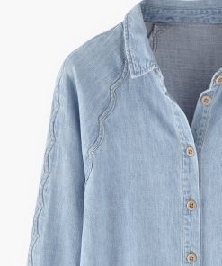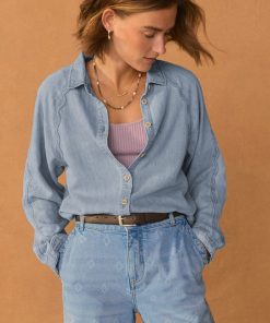 A lightweight denim shirt given a Wrap London twist with the addition of a special scallop seam detail at the sleeves. Made in soft hemp and organic cotton, in a pale indigo wash for a well-loved look.