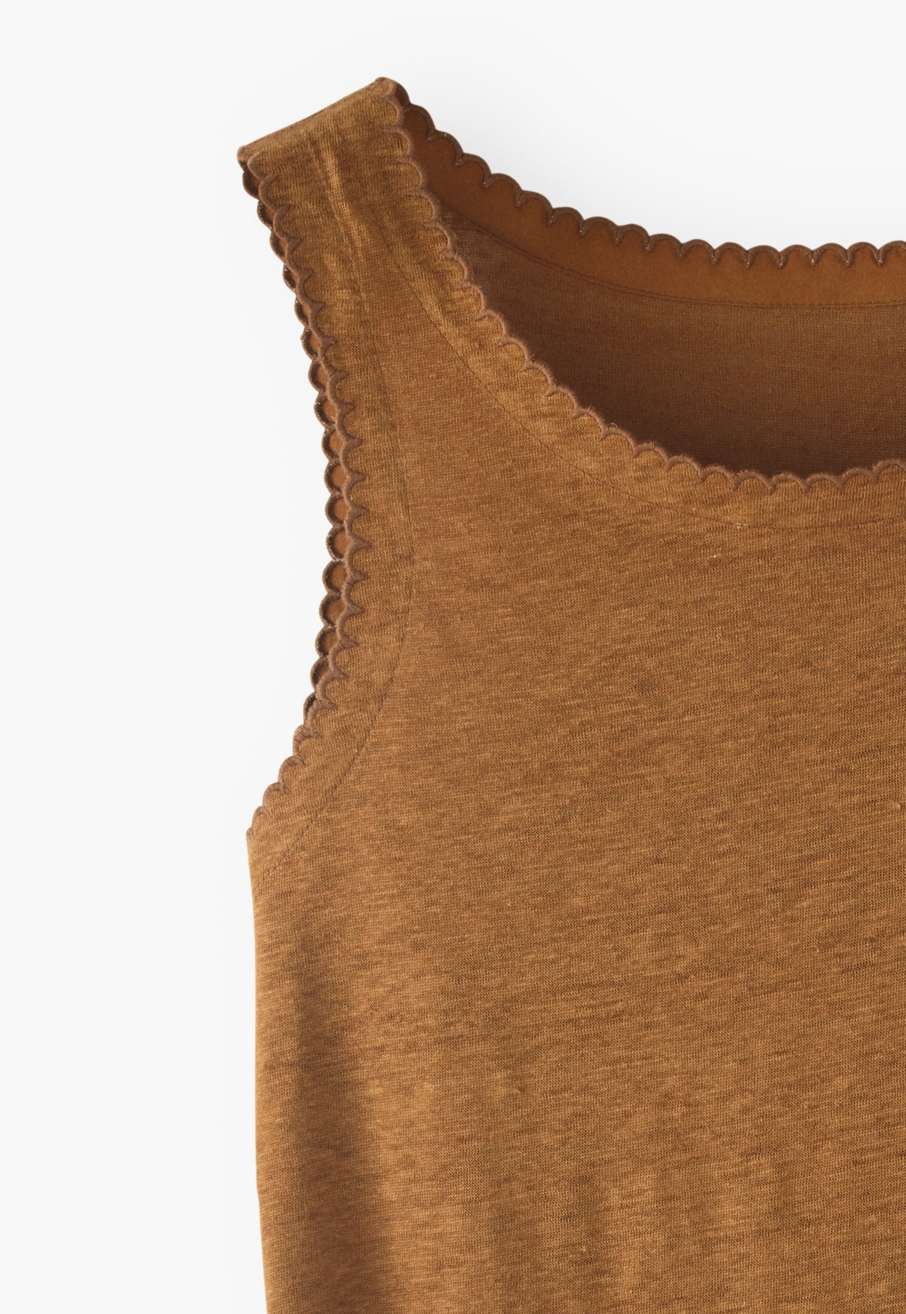 - Scalloped edge detail at neck and armholes