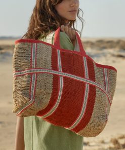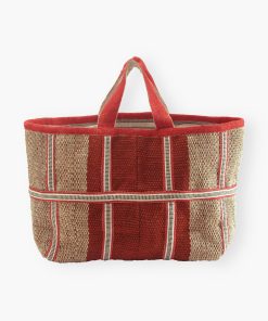 Attractive and practical roomy shopper bag handwoven in jute with pops of green colour. Fully lined with stripy cotton with plenty of pockets for all your essentials, each bag is handcrafted by female artisans at Maison Bengal, a Fair Trade organisation committed to fighting poverty.