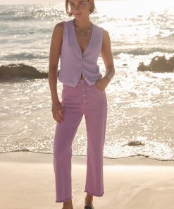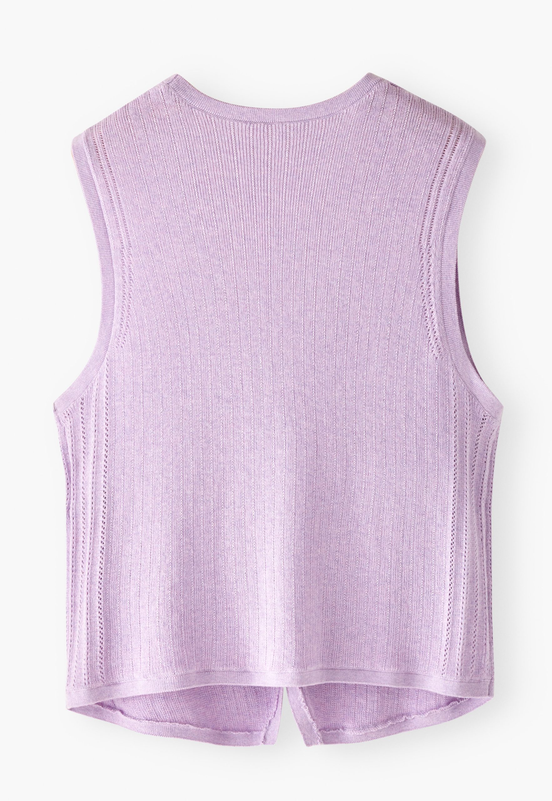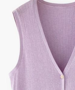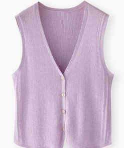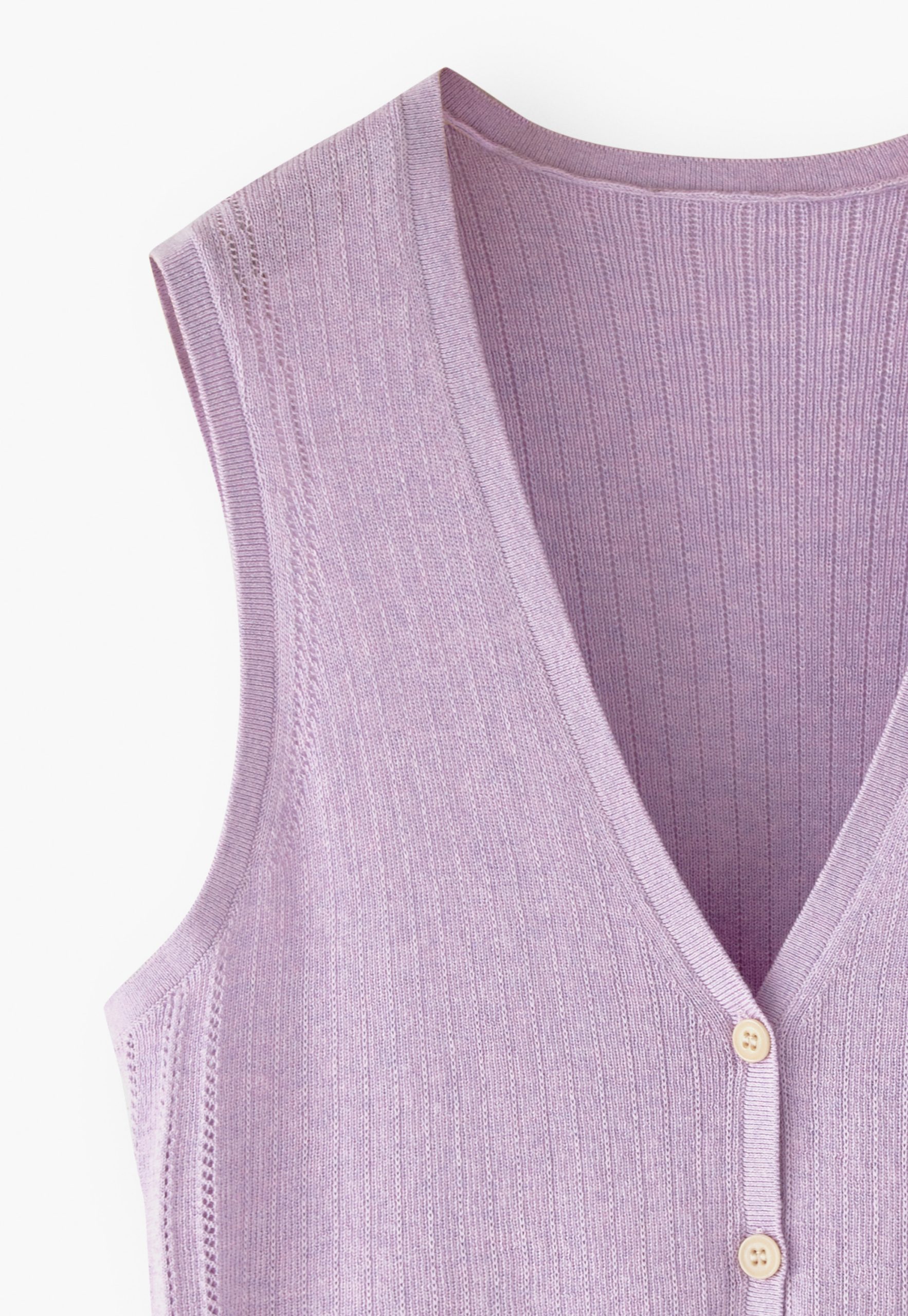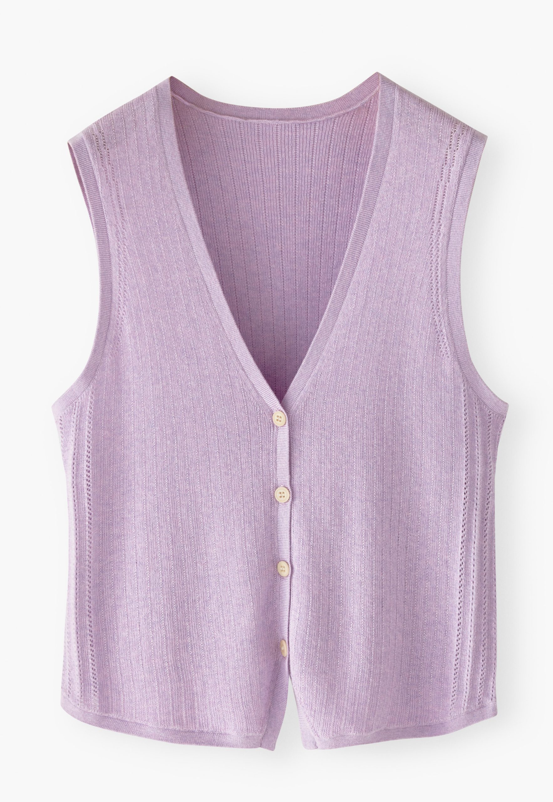 A soft and smooth sleeveless sweater vest in premium brushed organic cotton. Slightly longer at the front and with a gently curved hem, this v-neck button-through vest will feel wonderful next to the skin.