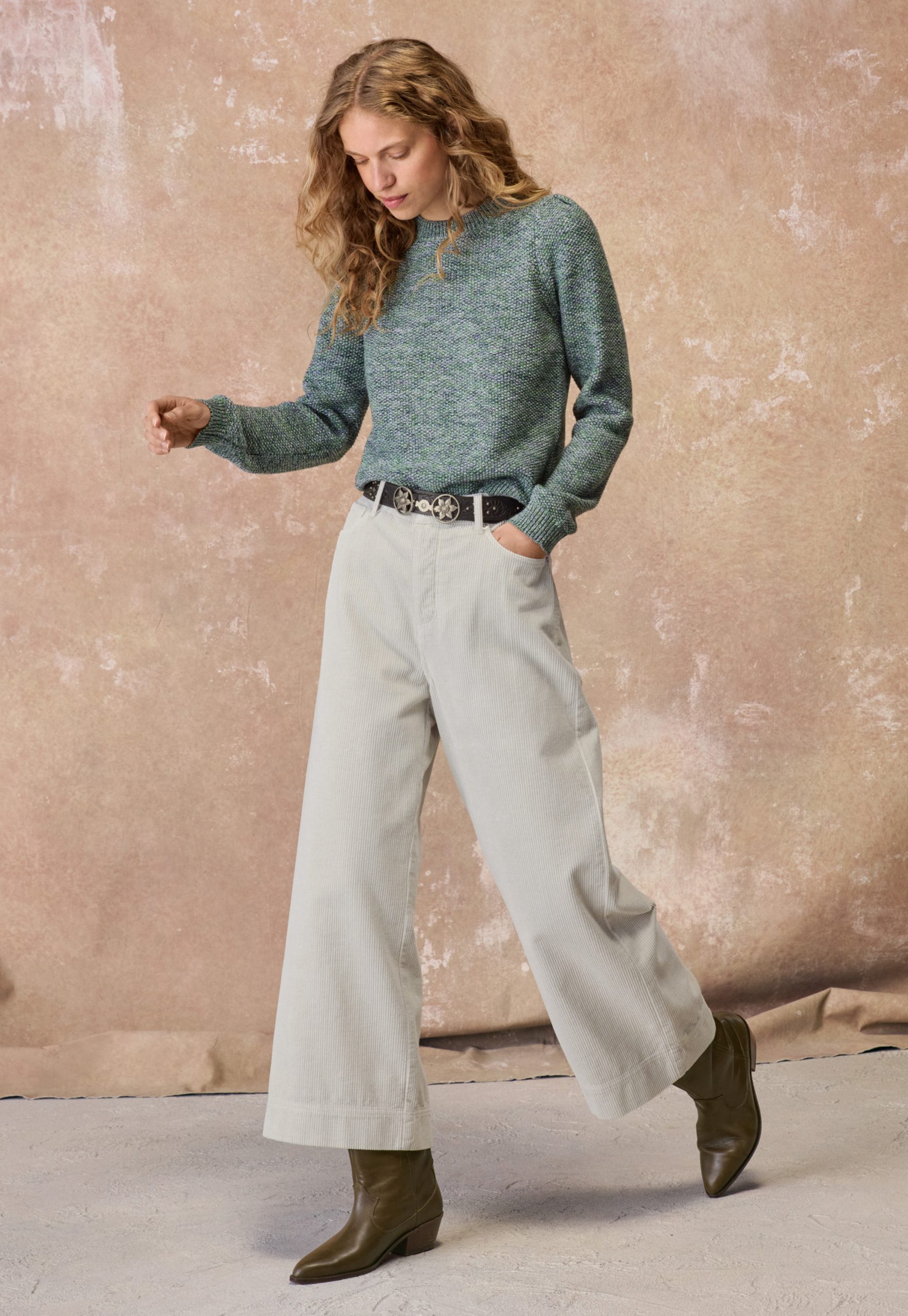 Cord continues to have its moment and this fabulous pair of cropped wide-leg trousers will be a welcome addition to your wardrobe. Create a seventies vibe by adding tall boots, or keep it down to earth with trainers instead.