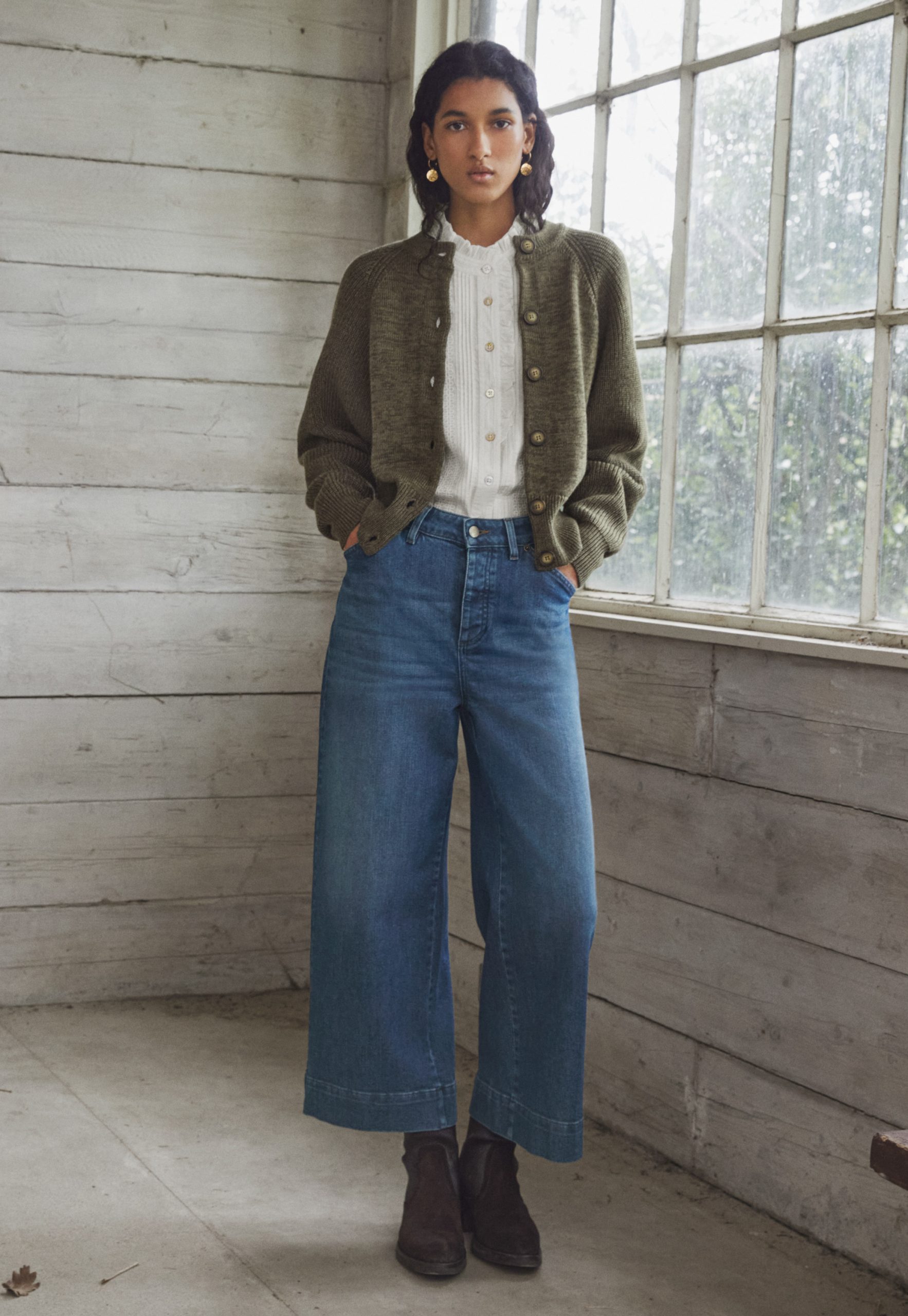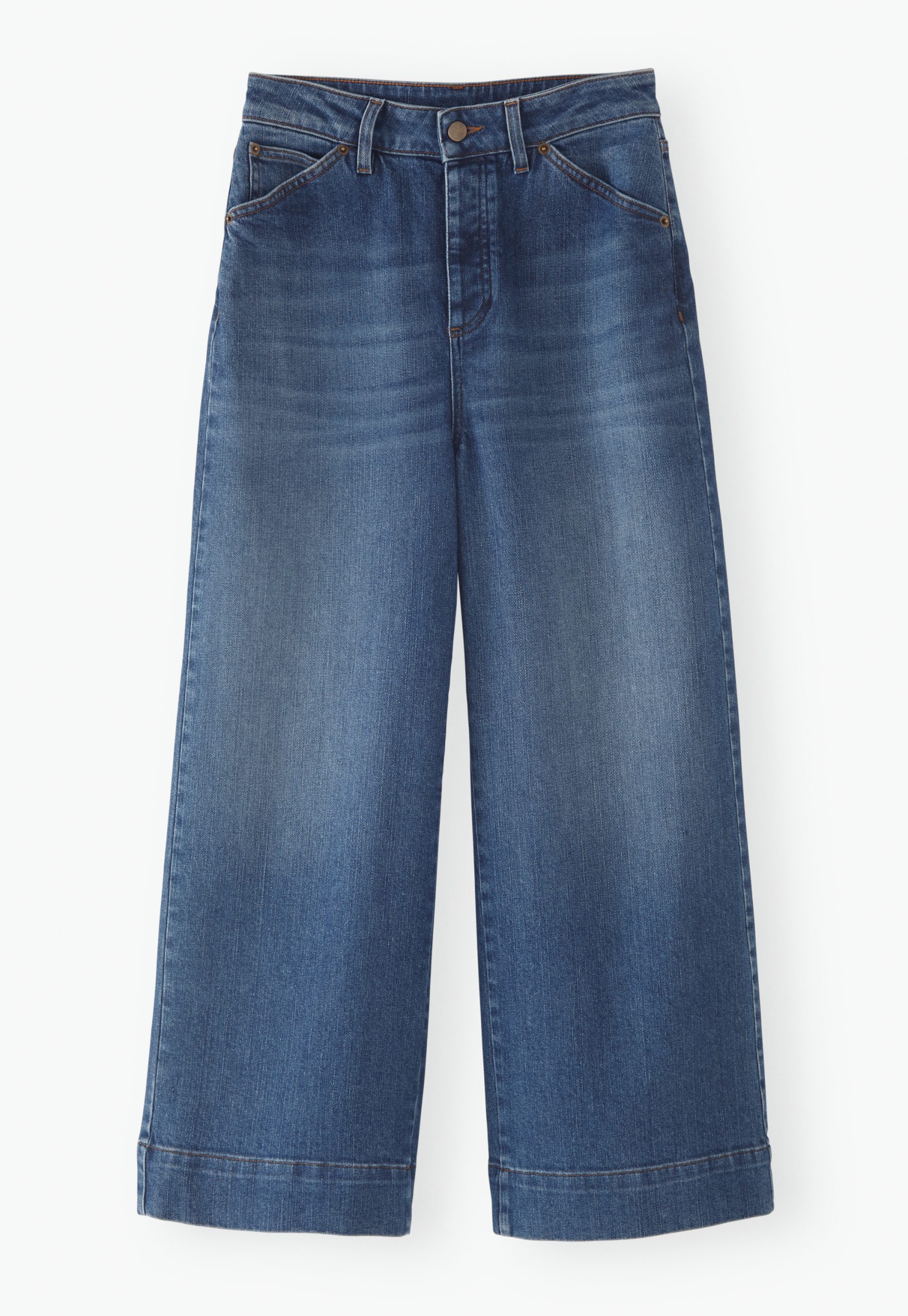 A favourite of the Wrap London designers, these wide-leg crop jeans in dark wash denim have great fit to make you feel fabulous. Fastened with a button fly and with classic five-pocket styling.