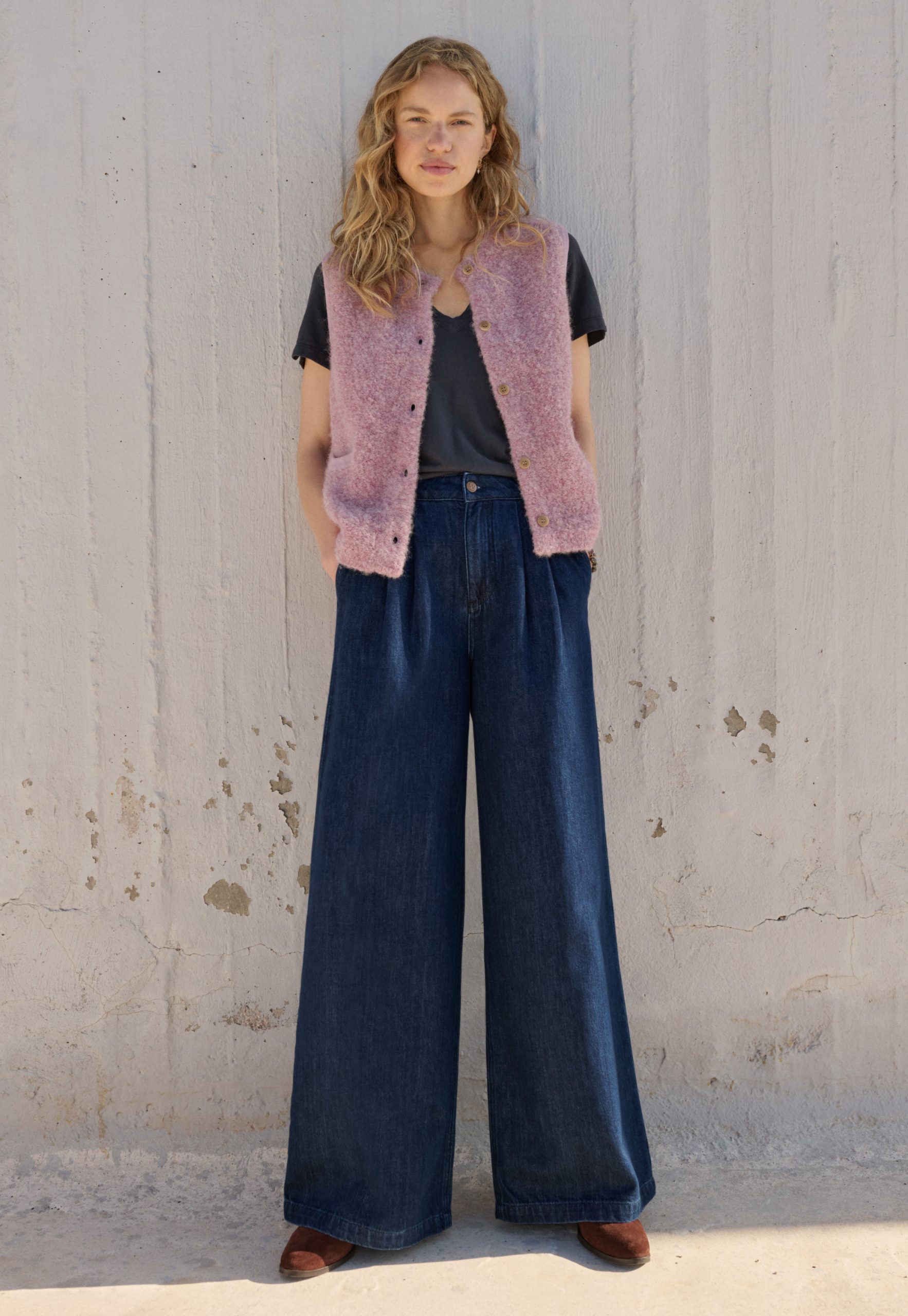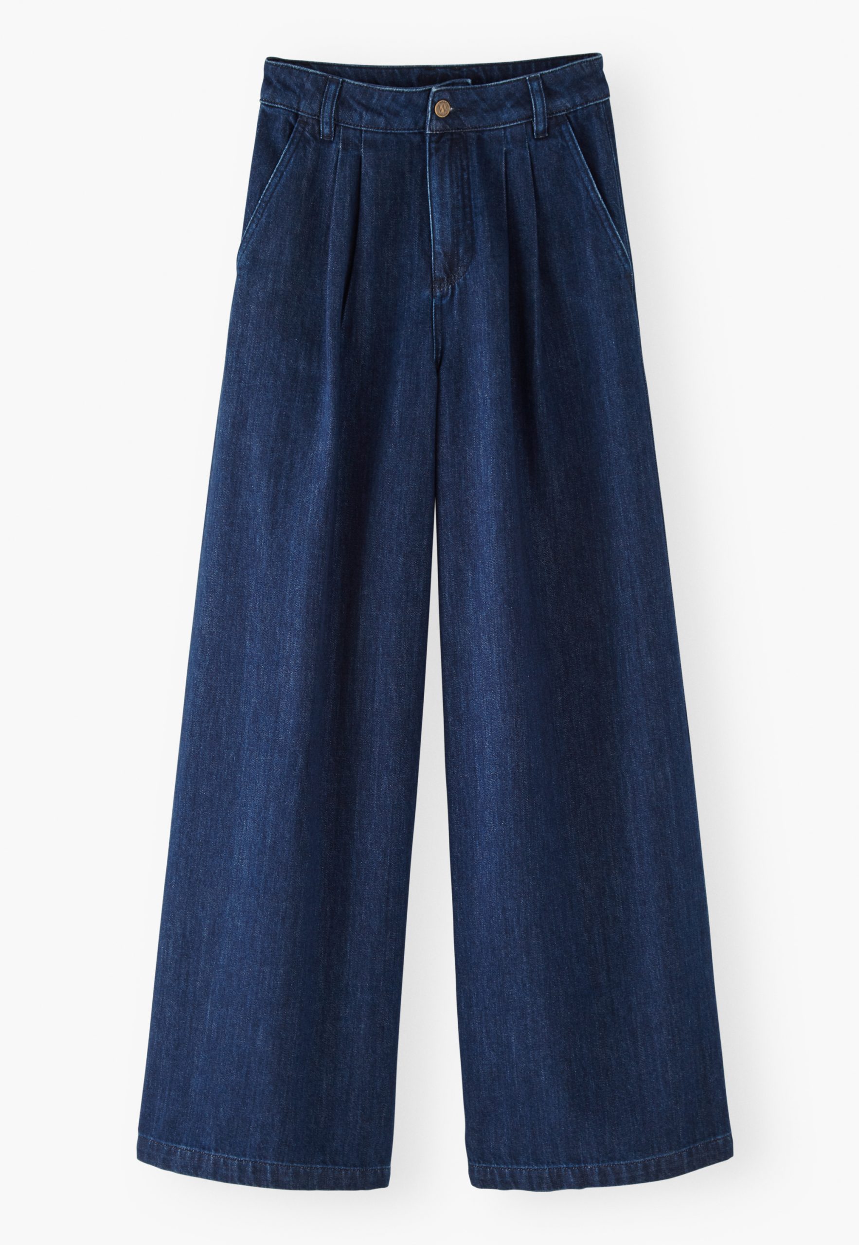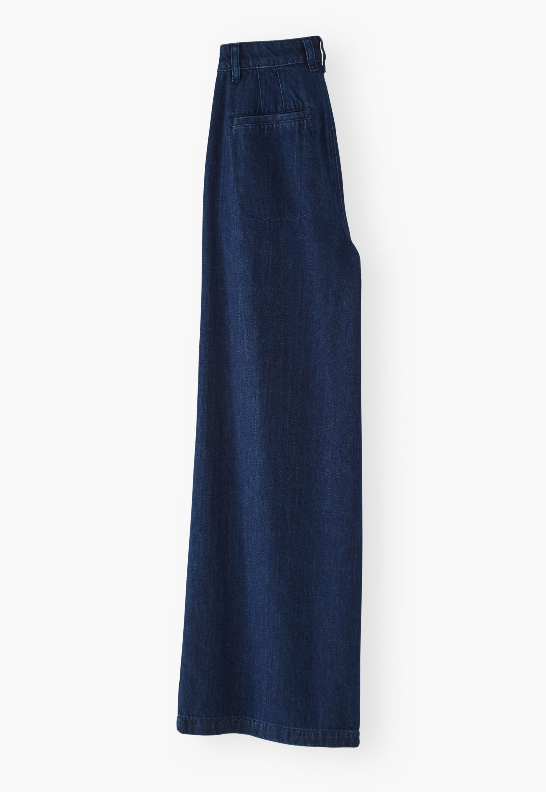Wonderfully wide-legged high-waisted jeans in a soft and drapey cotton and lyocell denim. Trim and tailored, this is denim for when you want to dress up.